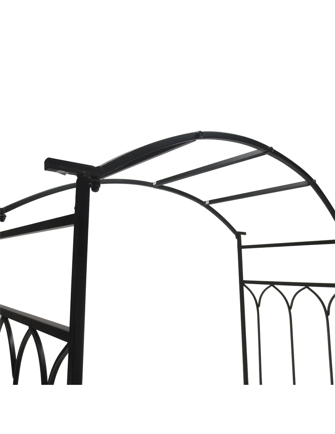 Outsunny Garden Metal Frame Bench W/Arch for Various Climbing Plant, 115Lx50Wx203H cm-Black
