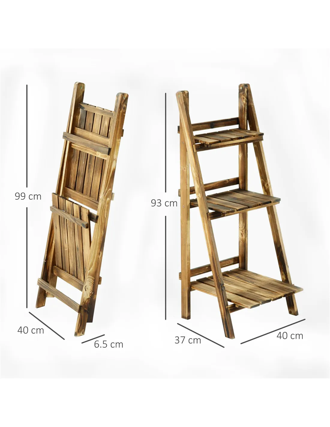 Outsunny Wooden Folding Flower Pot Stand 3 Tier Garden Planter Display Ladder Gardener Storage Shelves Rack Herb Holder (40L x 37W x 93H cm)