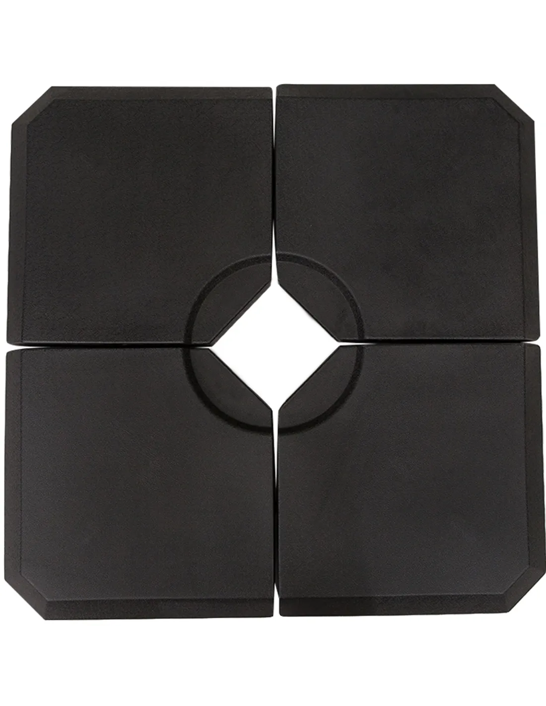 A: Each piece can be filled with up to 20kg of water or 30kg of sand, providing a total weight capacity of up to 120kg when all four are used together. - Q: Is the cross base included in the set?