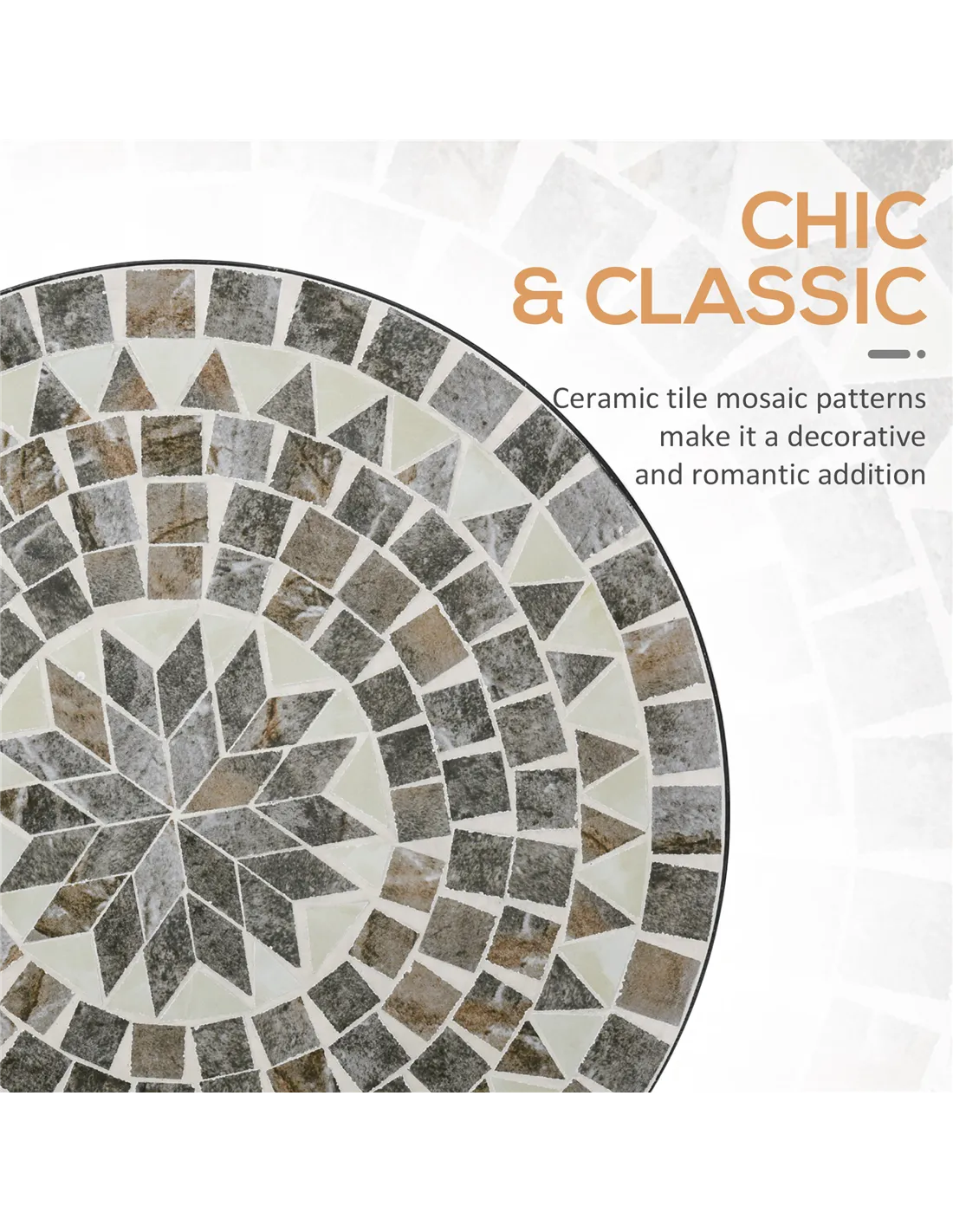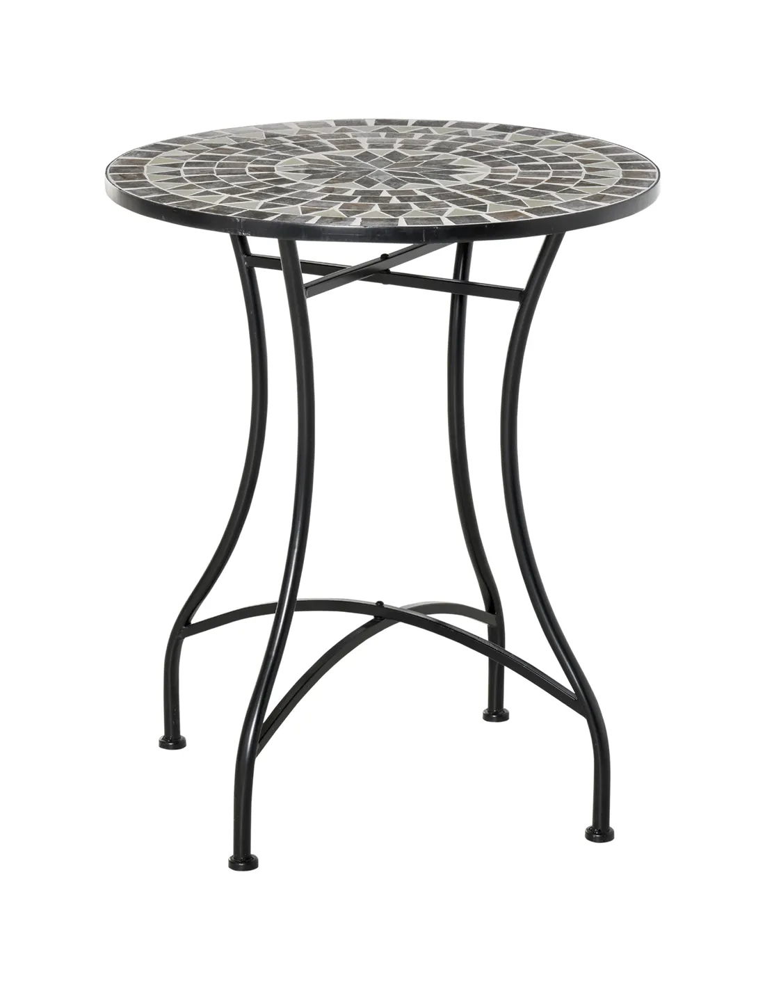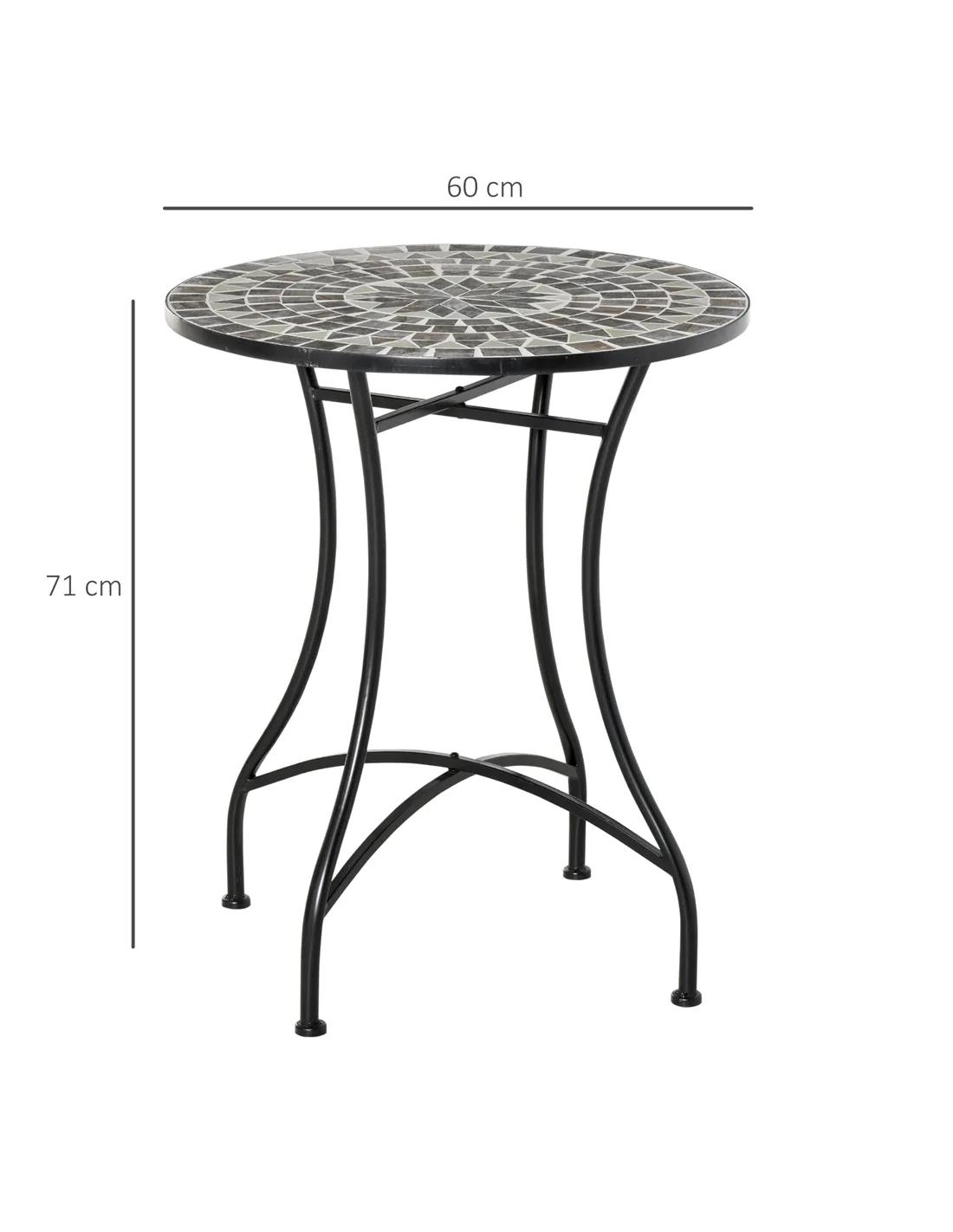 Outsunny Round Mosaic Tabletop Garden Table - Grey/Black