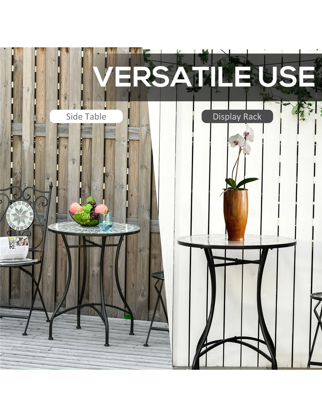 For a unique addition to your garden set-up and beyond, choose this Outsunny mosaic side table. A powder coated metal frame means it's tough and suitable for outdoor use; fitted with a colourful ceramic mosaic tabletop for plenty of character - whether as a garden patio table, indoor side table or as a plant stand.