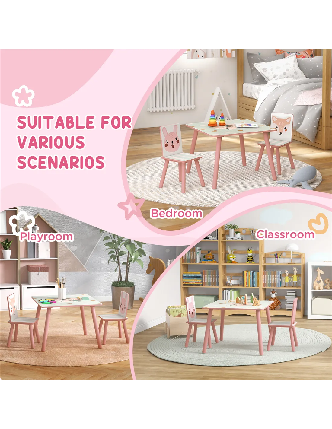 The ZONEKIZ kids activity set is perfect for creating a dedicated space where children aged 3 to 8 can explore creativity and learning. Use the table and chairs for homework, arts and crafts, or snack time, while the easel with paper roll and storage baskets encourages drawing, painting, and writing. Ideal for a playroom, bedroom, or even a quiet corner in the living room, this versatile furniture set helps keep children’s essentials organised and within easy reach. Its compact design and charming pink finish add a lively yet practical touch to any child-friendly environment.