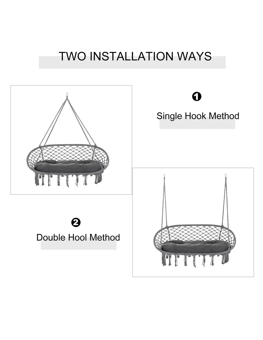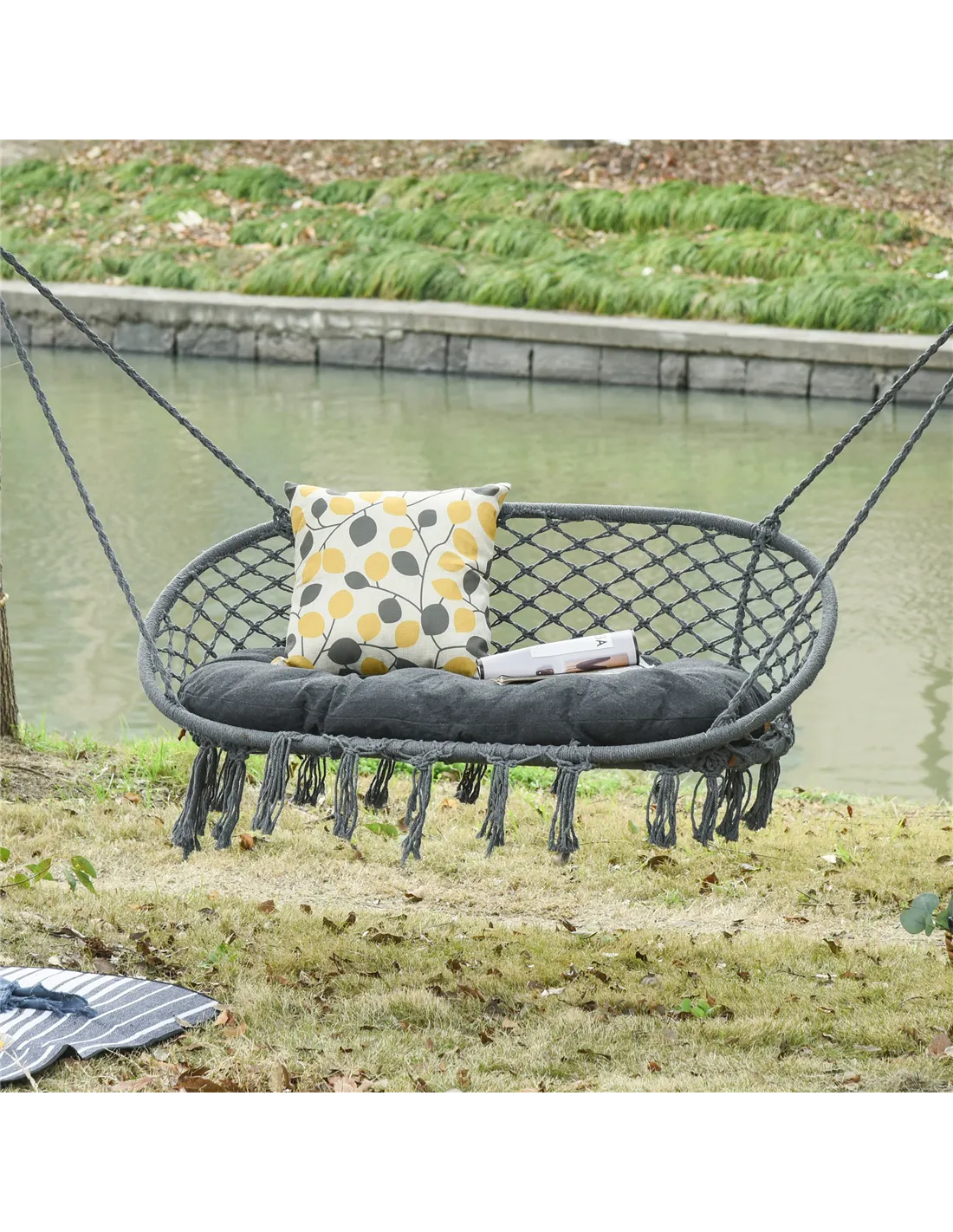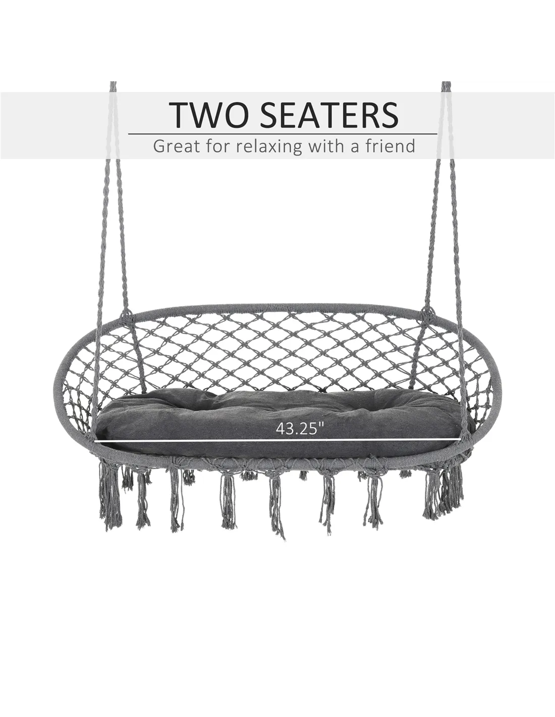 Outsunny Two-Seater Boho Macrame Hammock Swing - Grey