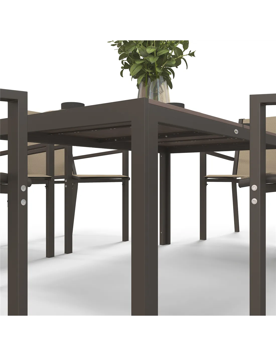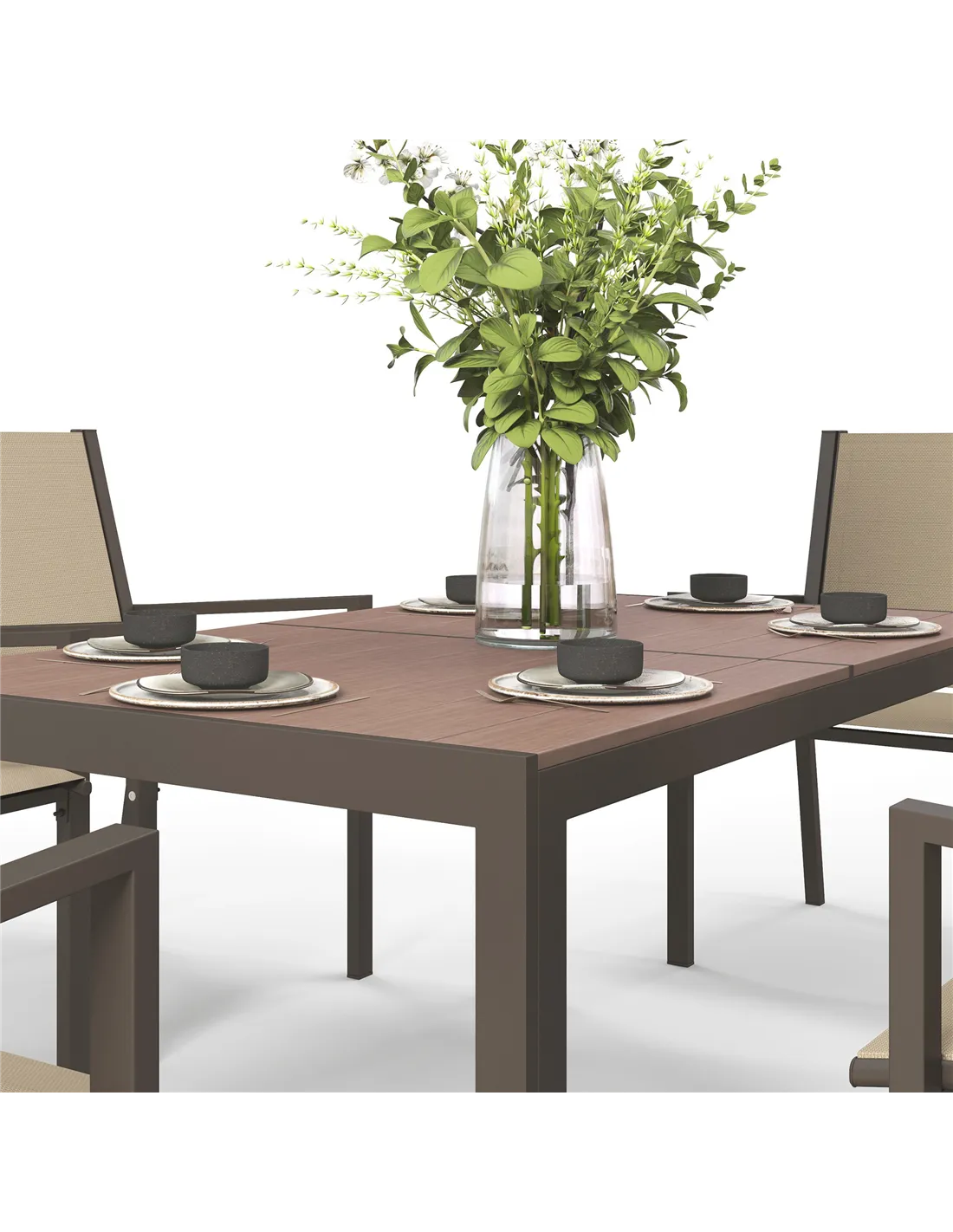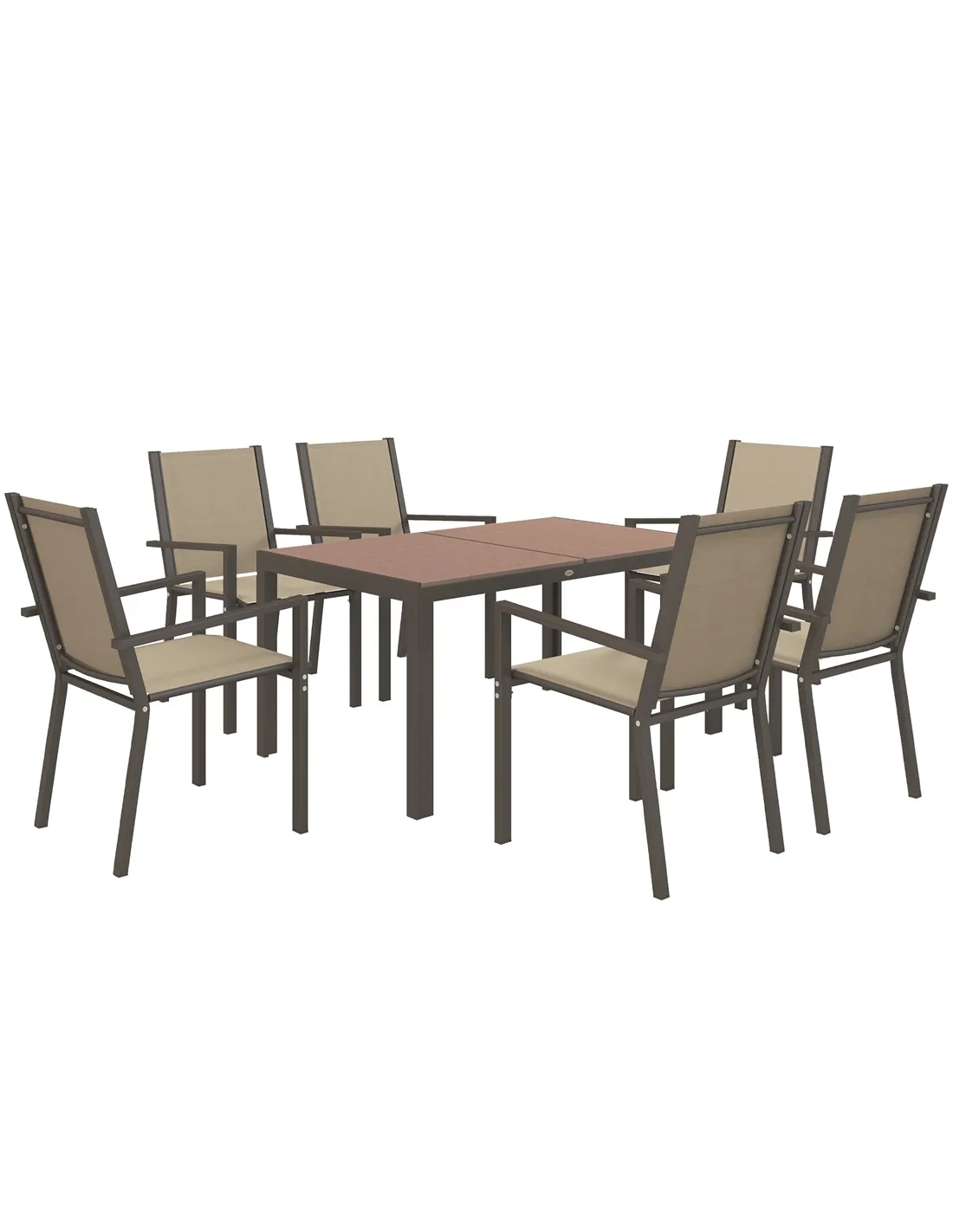 Outsunny Seven-Piece Garden Dining Set, with Plastic Wood-Top Table - Brown