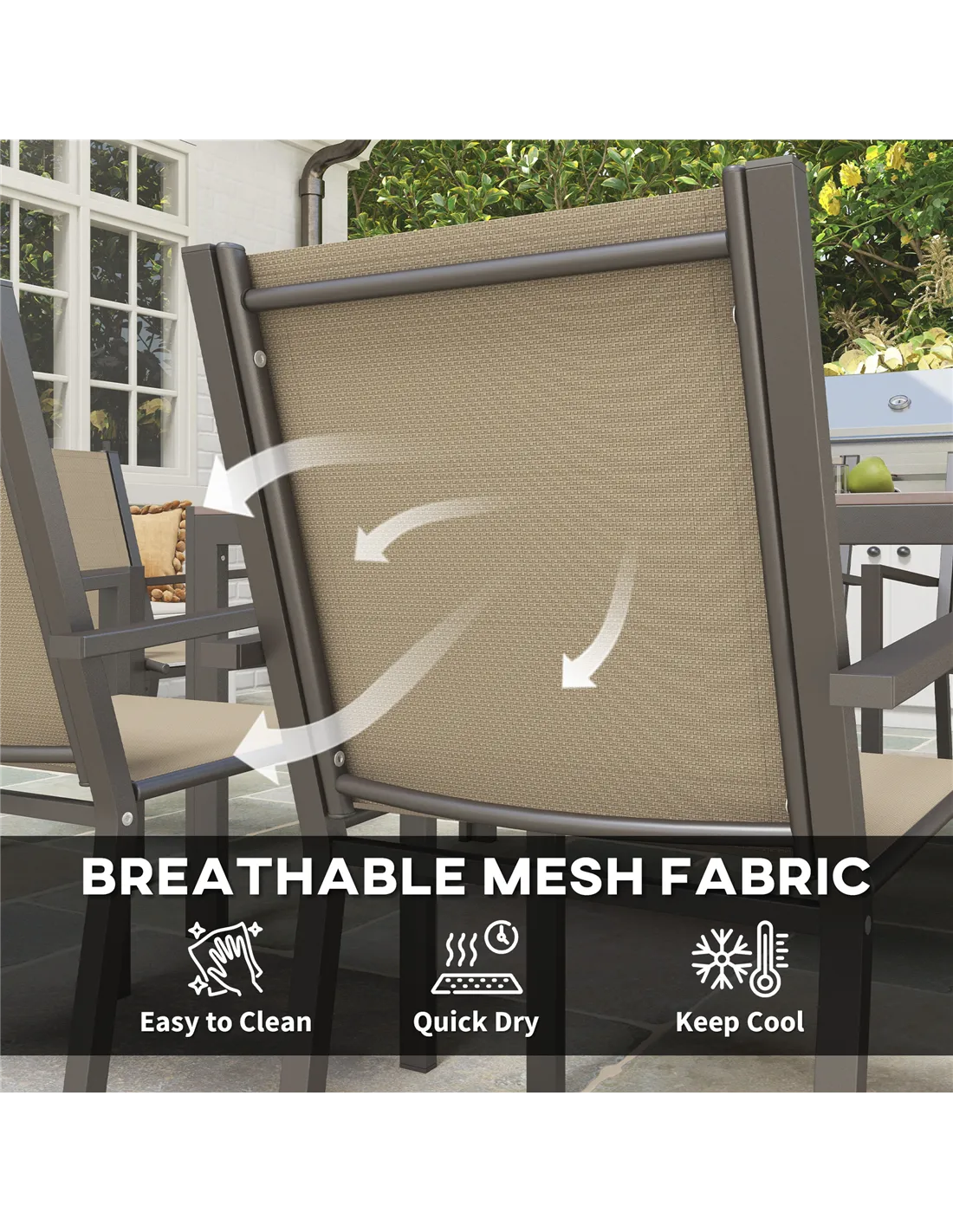 The Outsunny seven-piece garden dining set is perfect for a variety of outdoor occasions. Whether hosting a casual breakfast on the patio, a relaxed brunch with friends, or an evening dinner under the stars, this set comfortably accommodates six guests. Its robust plastic wood-top table and powder-coated steel frame make it ideal for UK gardens, terraces, or conservatories, blending rustic charm with practical durability. Stackable chairs allow for easy storage when not in use, making it suitable for smaller outdoor spaces or seasonal use. Consider pairing it with weatherproof cushions or a protective cover to enhance comfort and longevity.