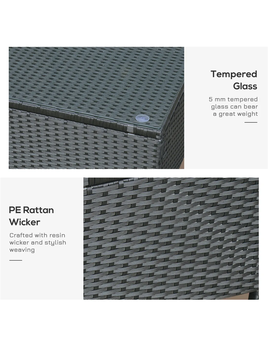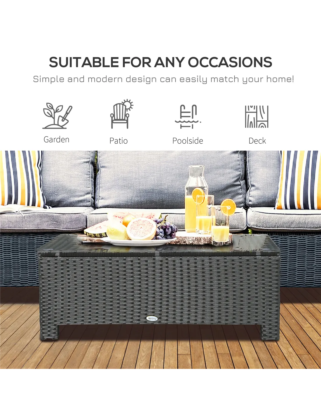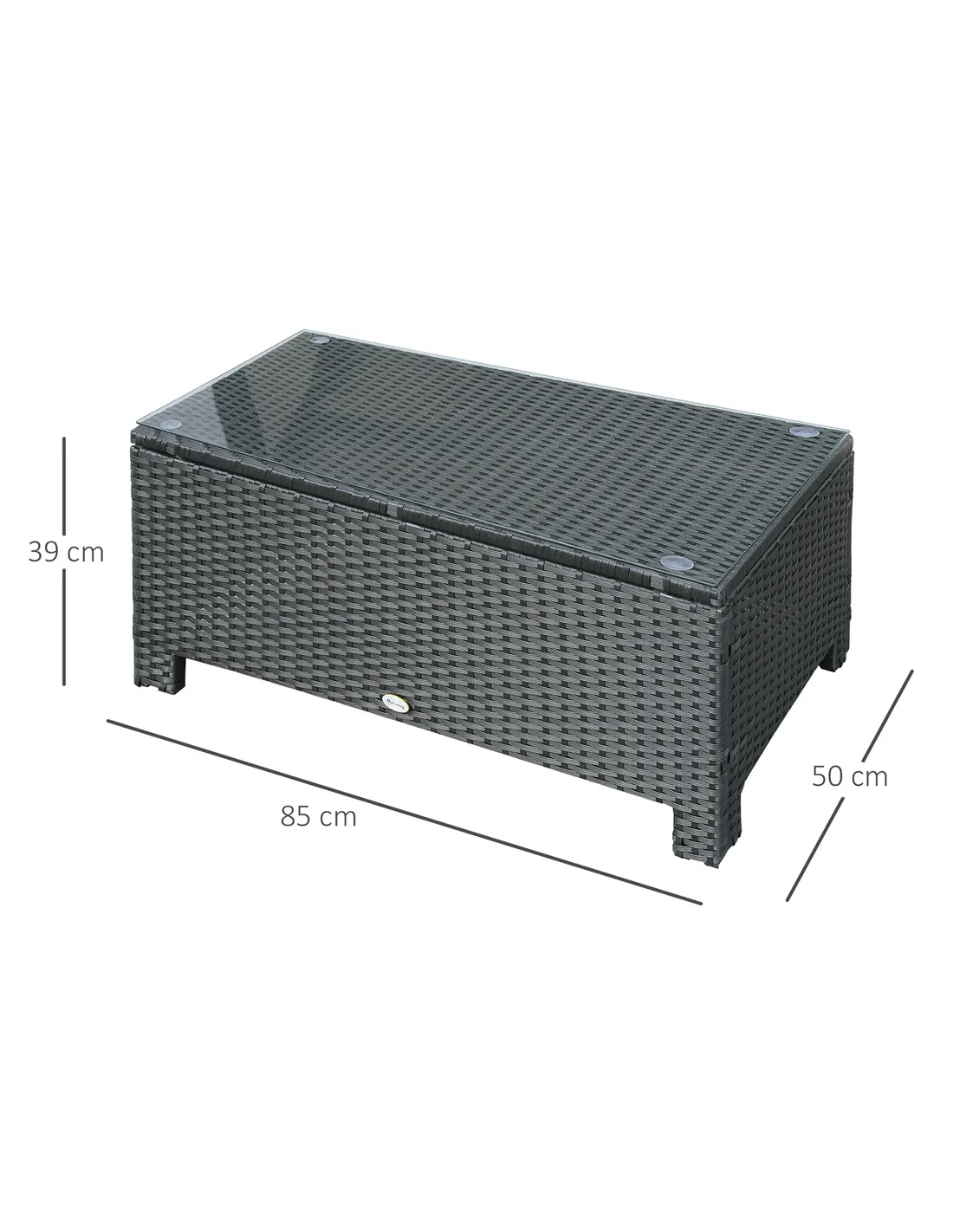 Outsunny PE Rattan Coffee Table, Rectangular Outdoor Coffee Table with Tempered Glass Top, 70 KG Capacity for Garden, Balcony, Terrace, Patio, Black