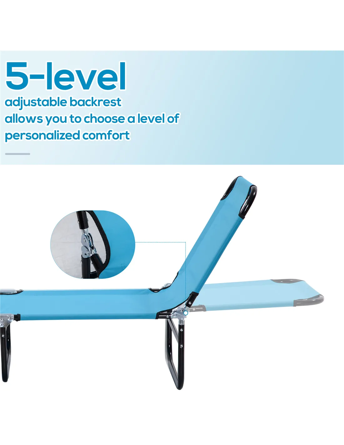 Outsunny Garden Sun Lounger, with Five-Position Back - Light Blue