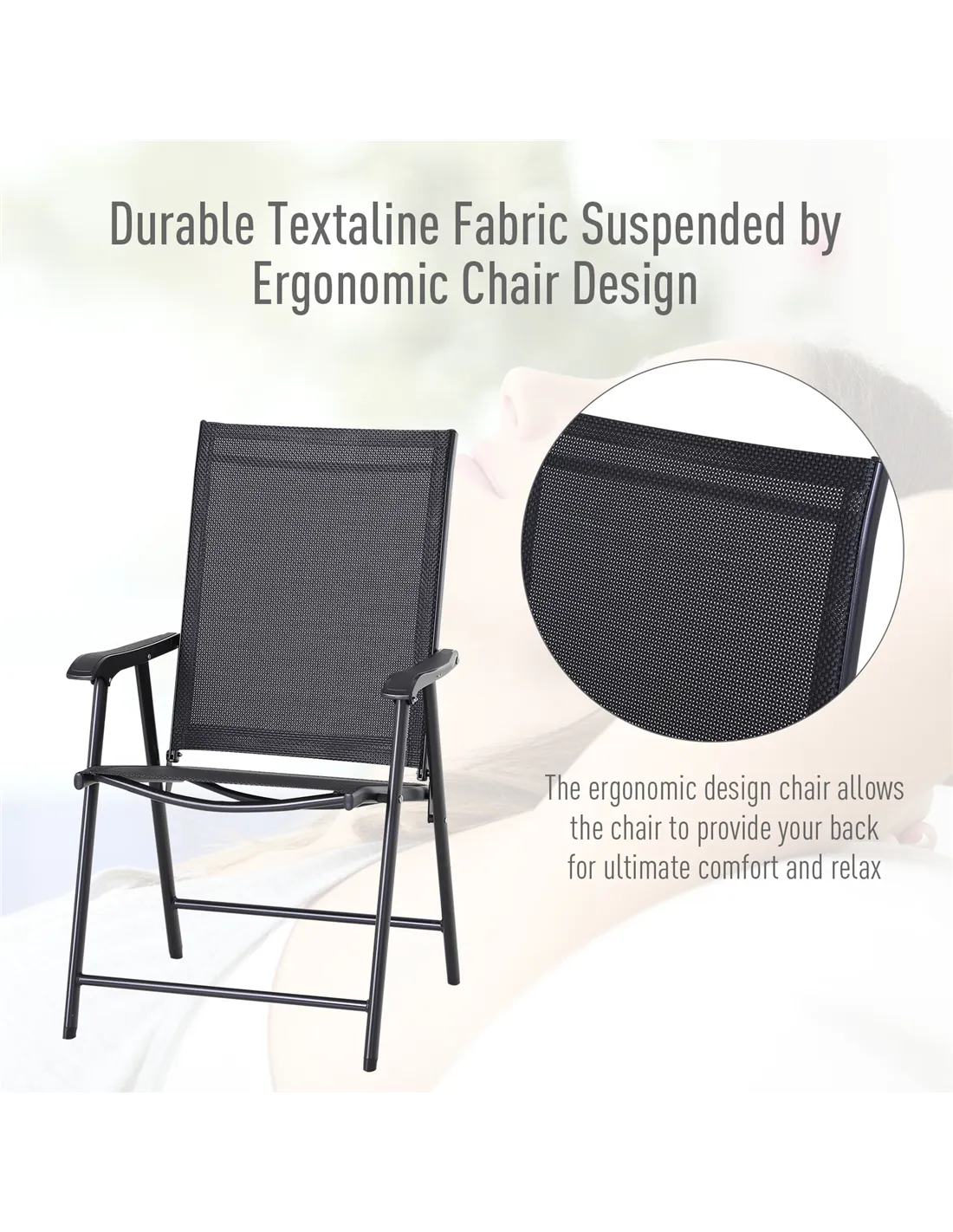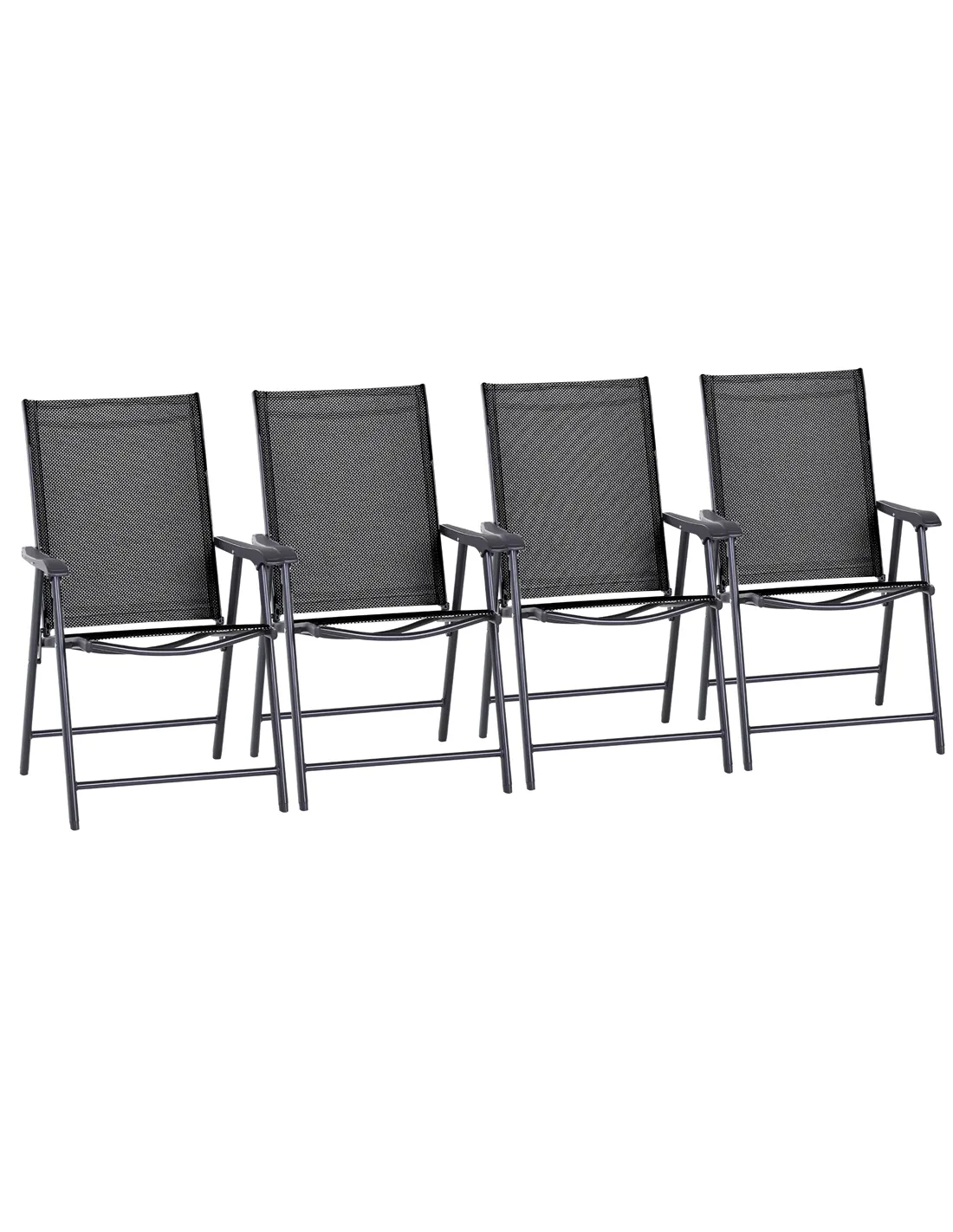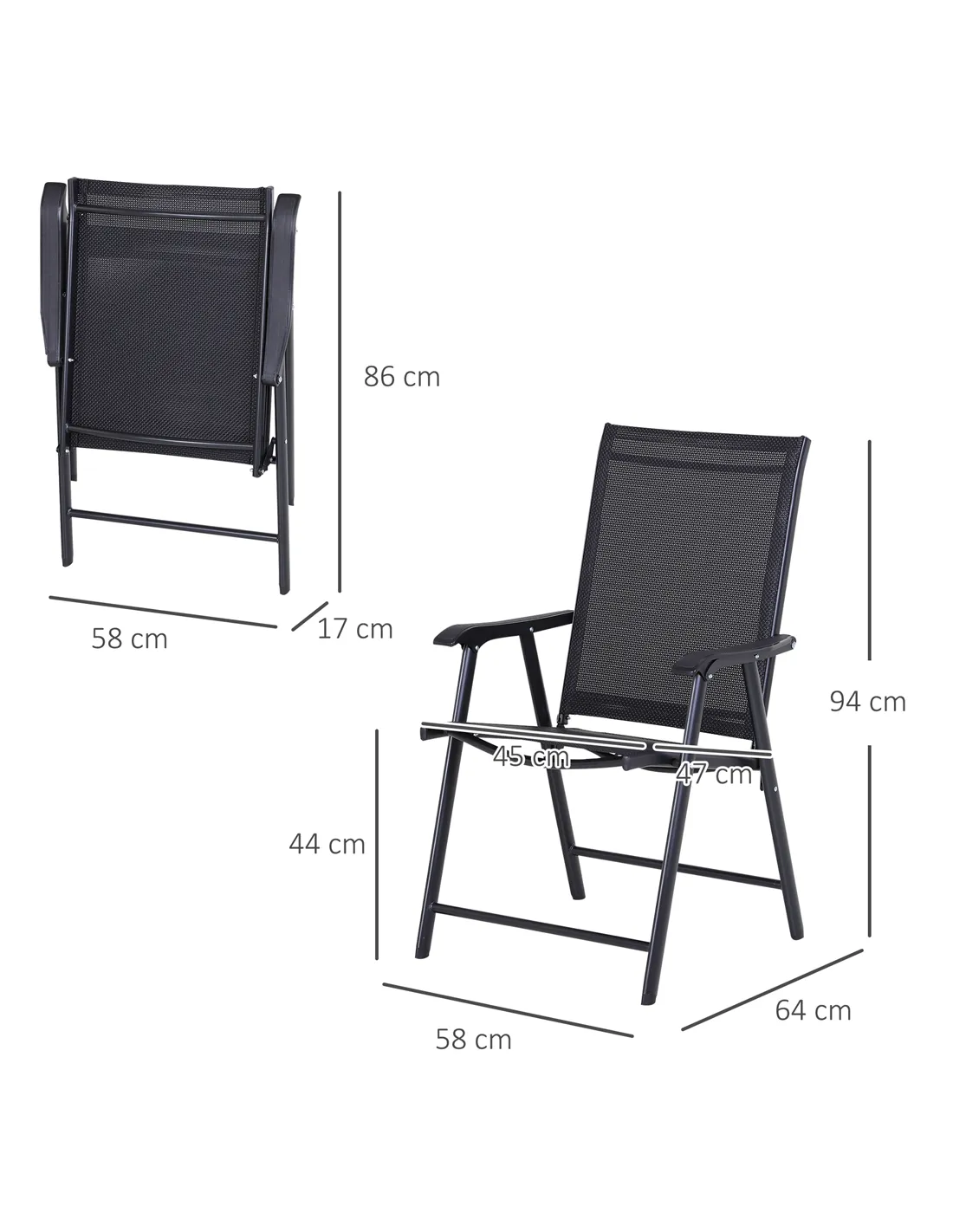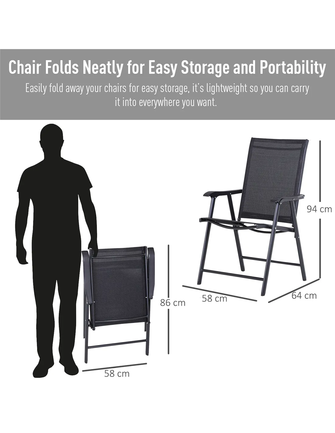 Outsunny Set of 4 Folding Garden Chairs, Metal Frame Garden Chairs Outdoor Patio Park Dining Seat with Breathable Mesh Seat, Black