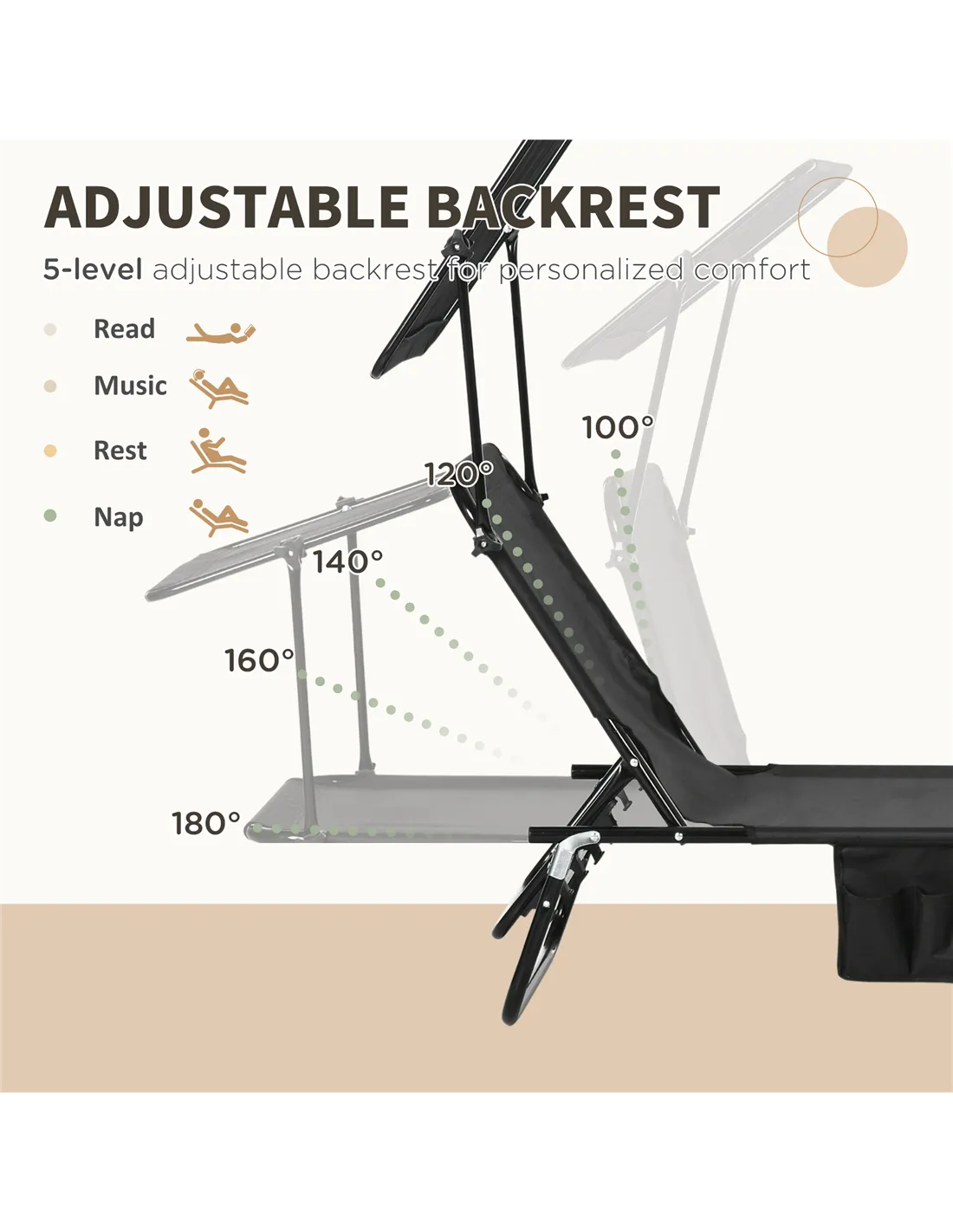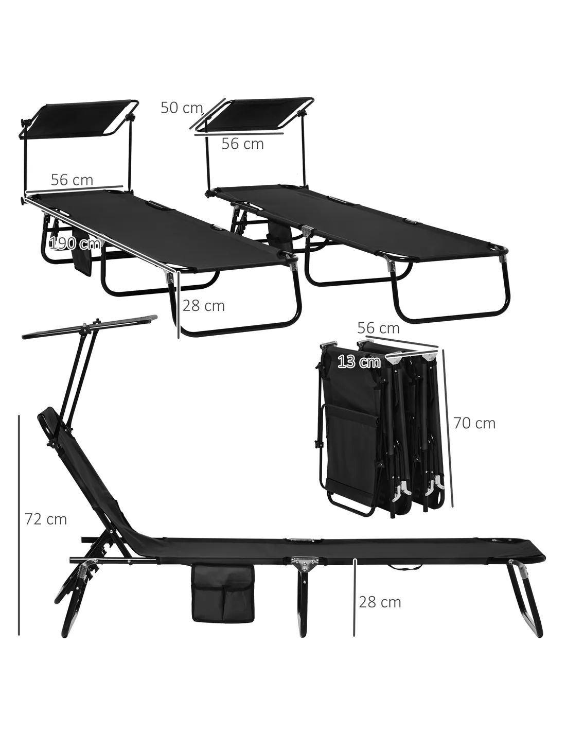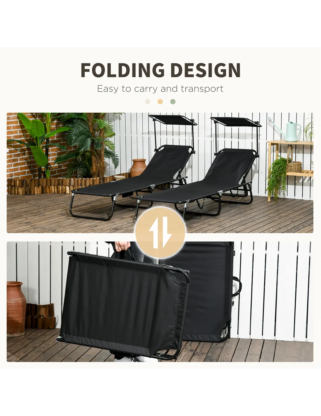 Outsunny Set of Two Folding Sun Loungers, with Adjustable Backs and Sun Canopies - Black