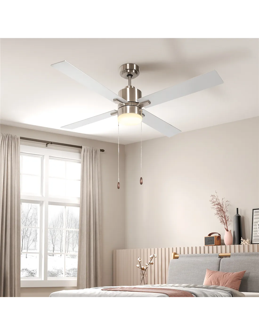 - Pull-chain switch, the light and fan can be controlled separately. Button of the body to change motor direction
