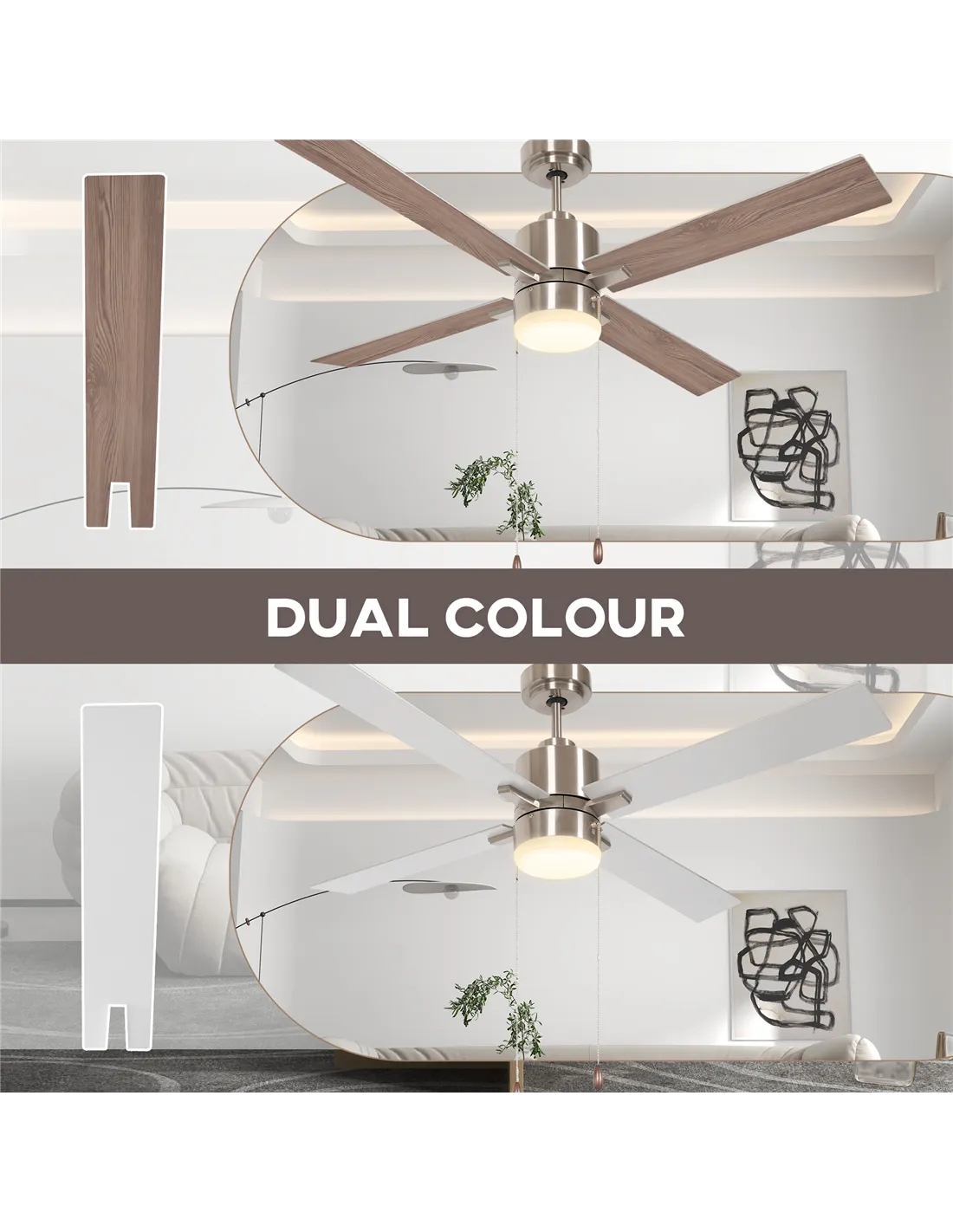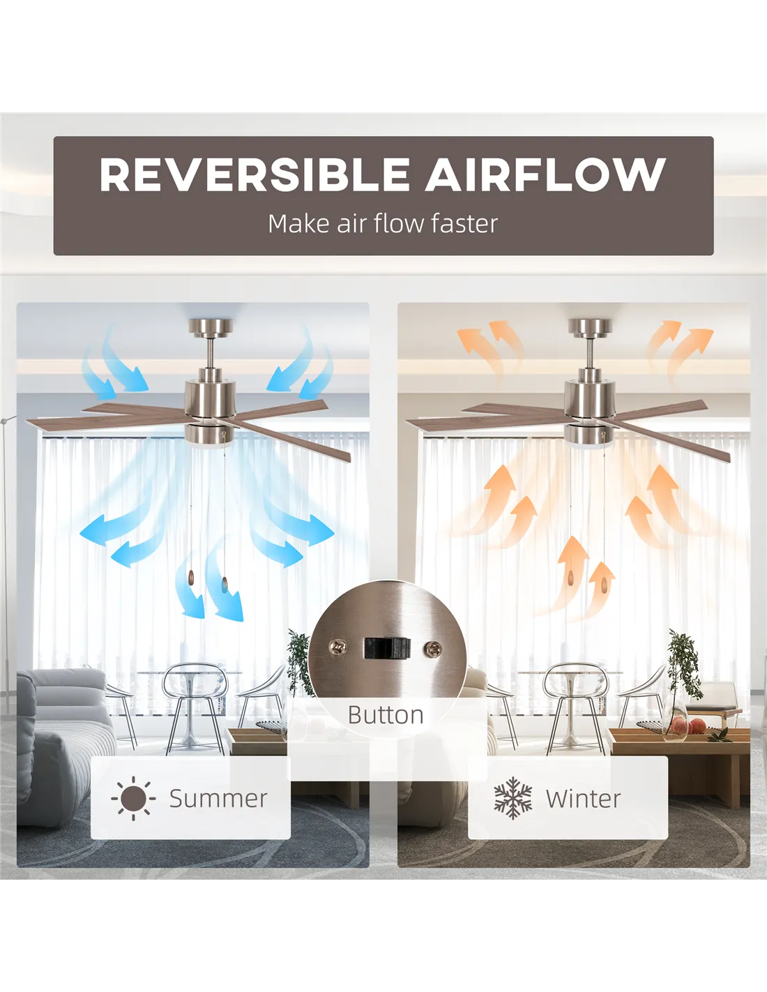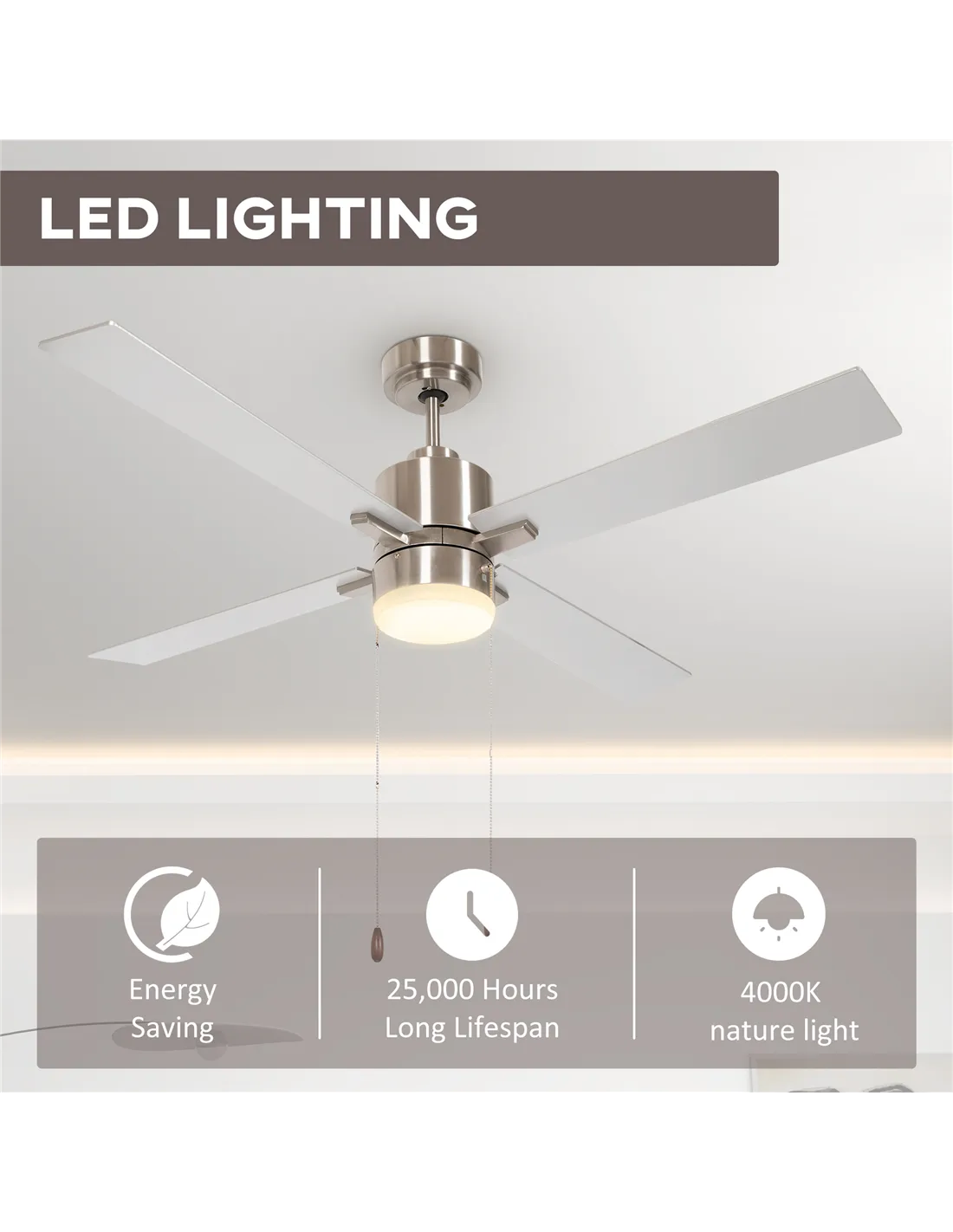 HOMCOM Ceiling Fan with LED Light, Flush Mount Ceiling Fan Lights with Reversible Blades, Pull-chain, Silver and Natural Tone
