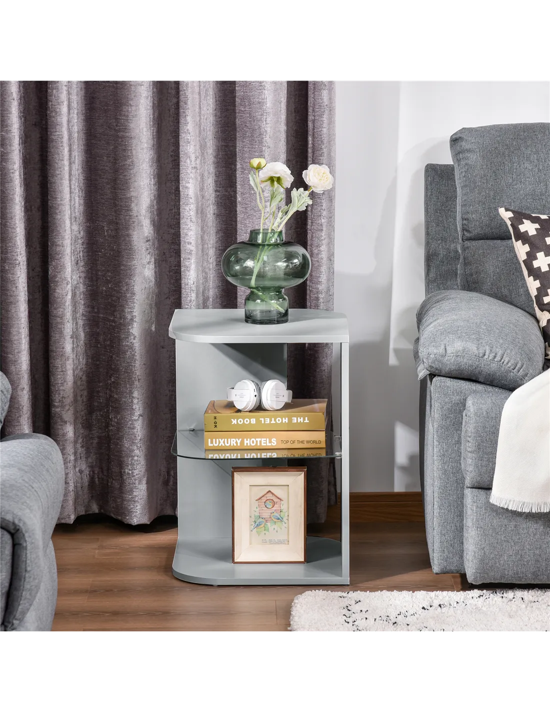 HOMCOM Modern Side Table Three Layer Bedside Table Nightstand with 2 Storage Shelves, for Living room, Bedroom, Grey