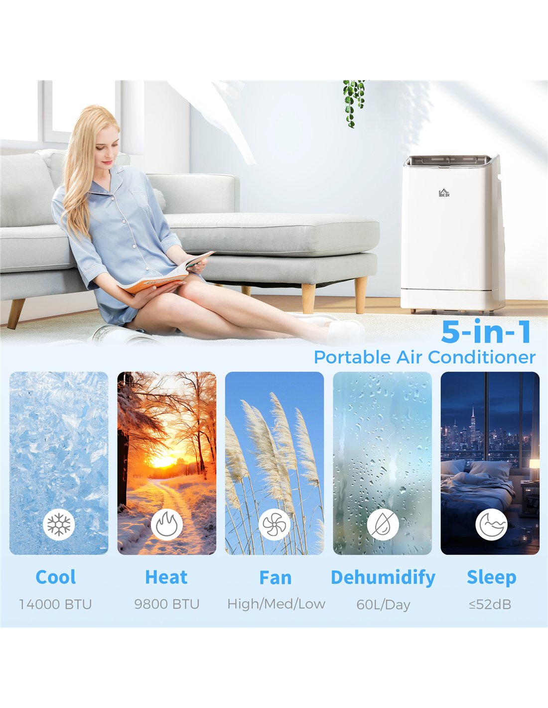 HOMCOM 14000 BTU Mobile Air Conditioner, Smart Home WiFi Compatible, with Heater, Cooler, Dehumidifier, Fan, 24H Timer