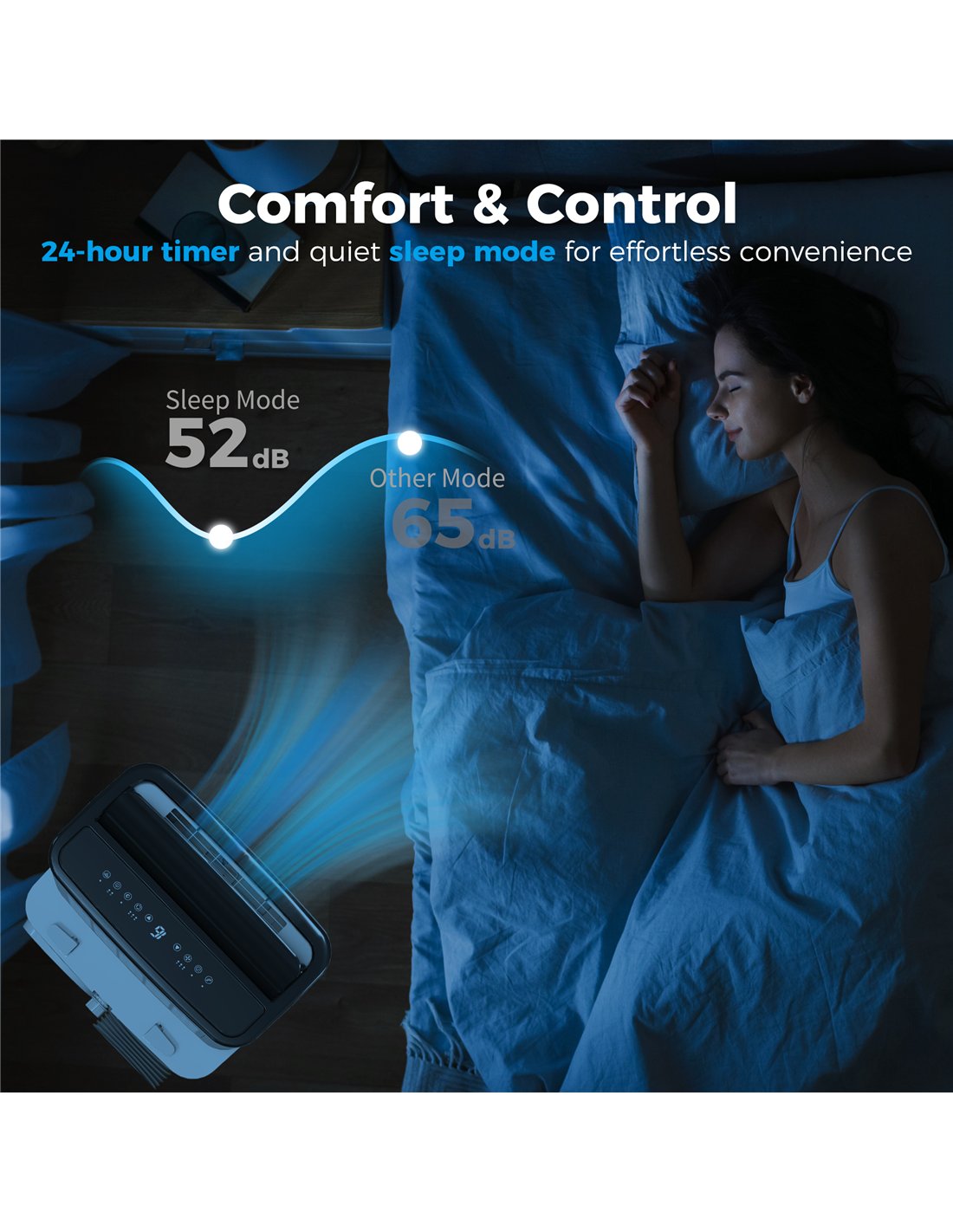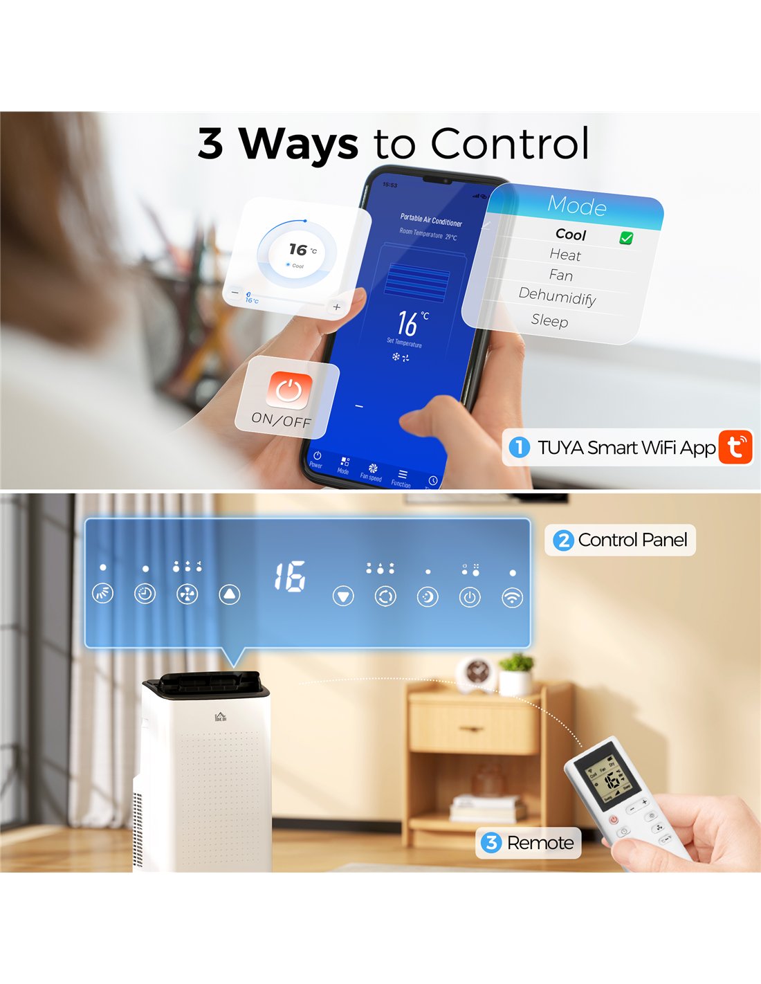 - Three ways to control: TUYA app, remote and on-unit LED panel