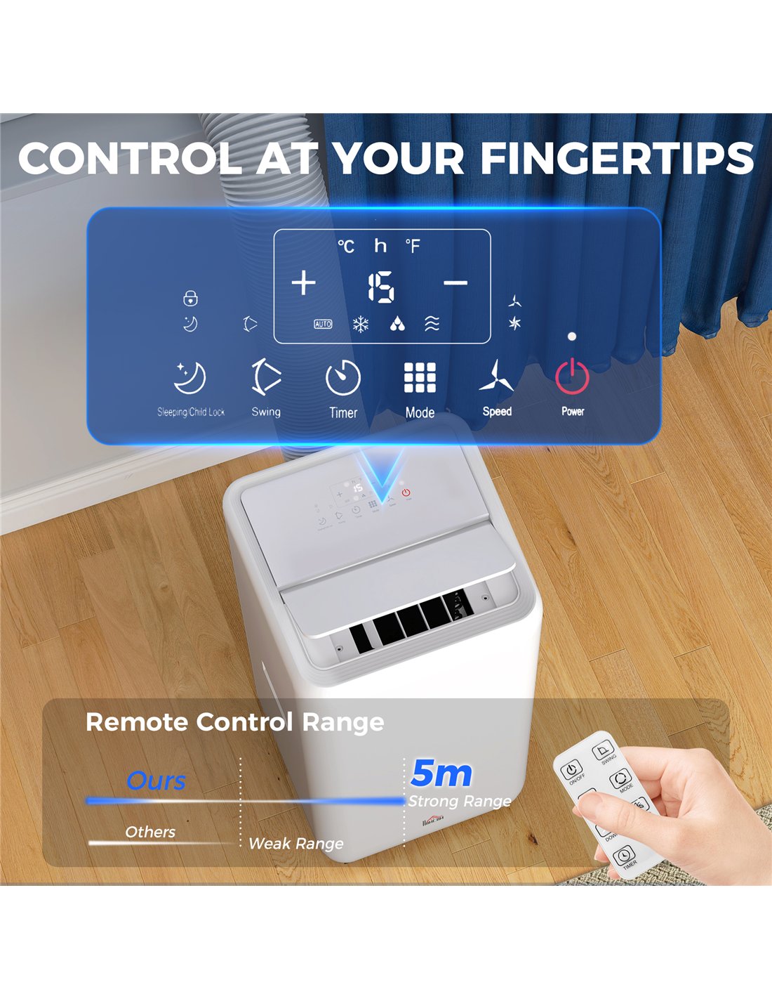- Air blades can be moved up and down automatically. Adjust wind direction easily
