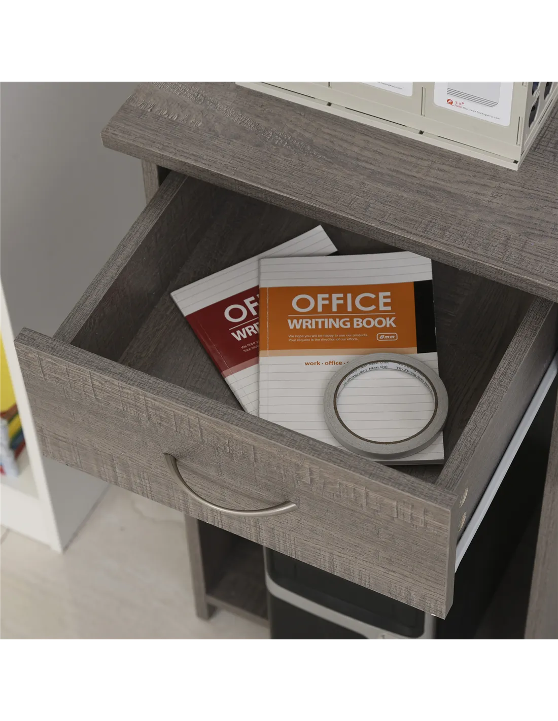 - Perfect for students needing a compact yet functional study desk with ample storage for books, stationery, and a computer setup.