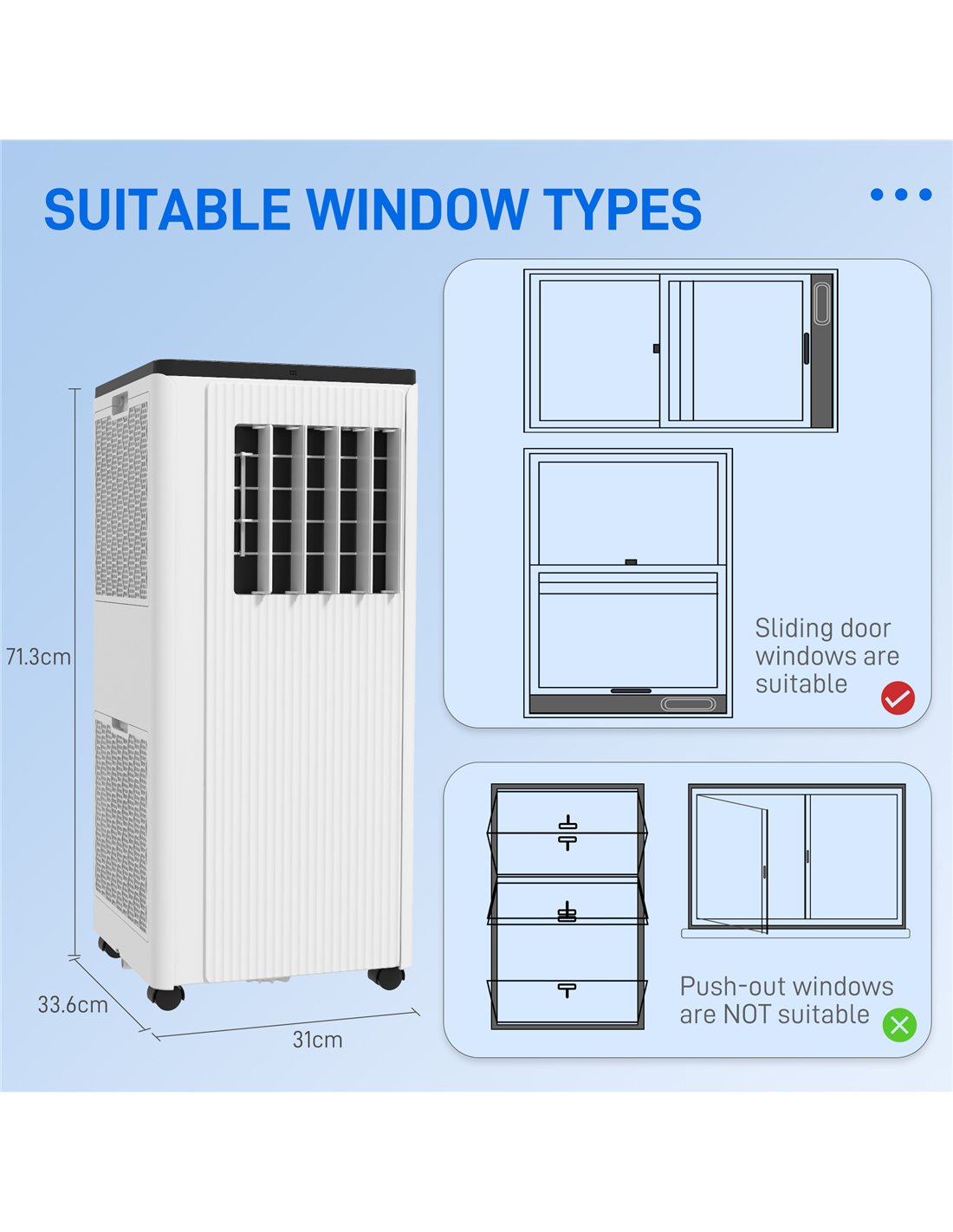 - Is the HOMCOM air conditioner suitable for all window types?