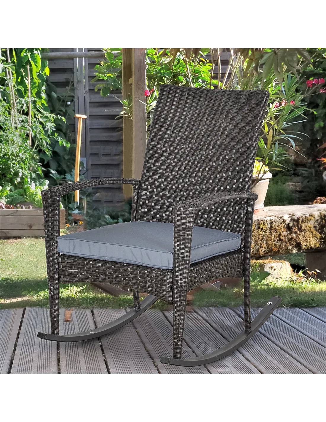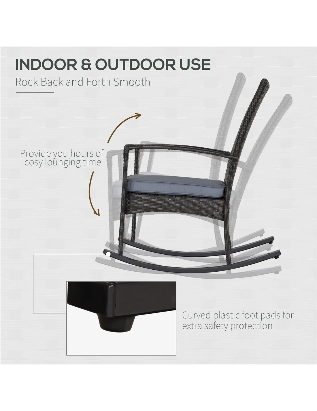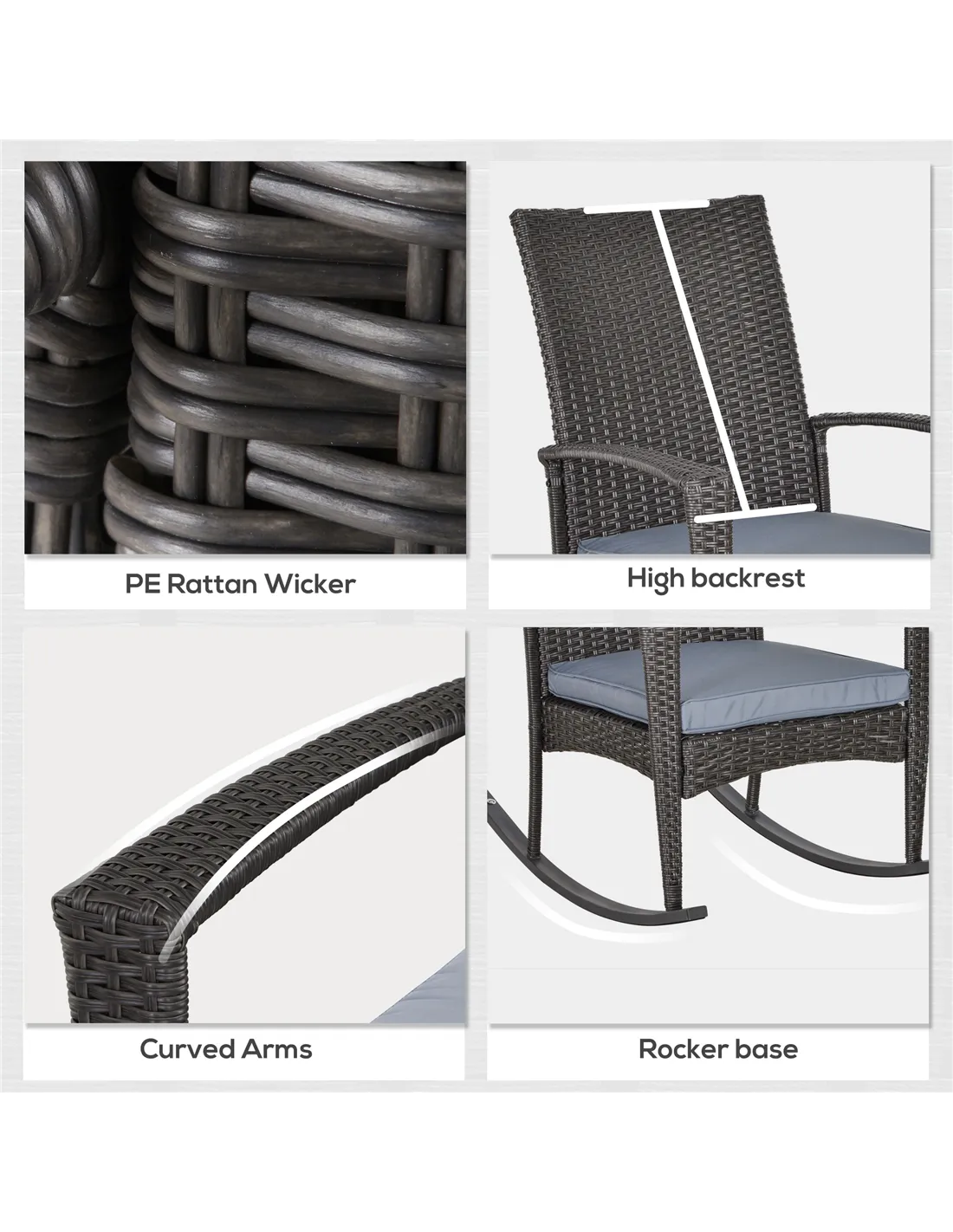 Outsunny Outdoor PE Rattan Rocking Chair, Garden Rocking Chair Set with Armrest and Cushion, Grey