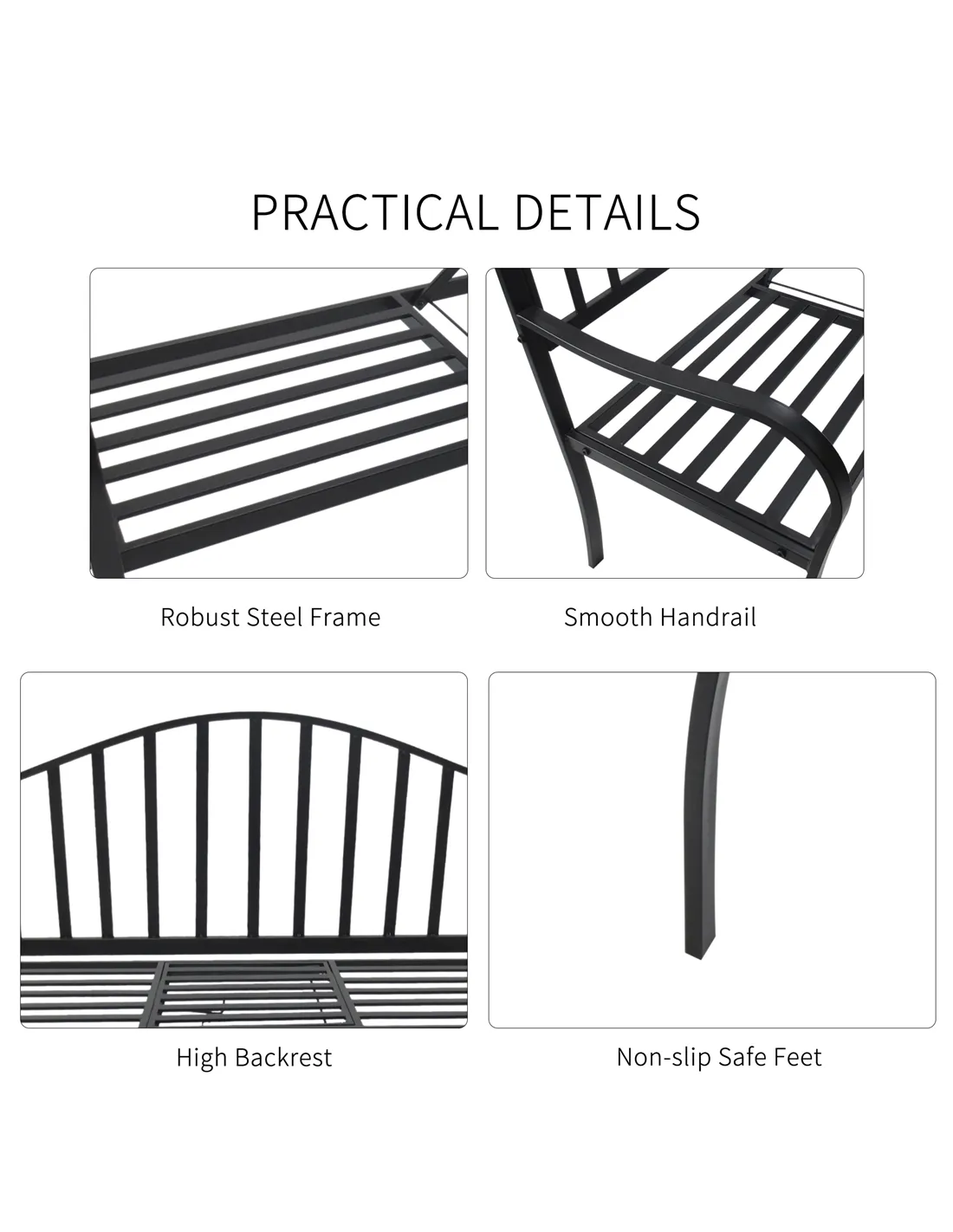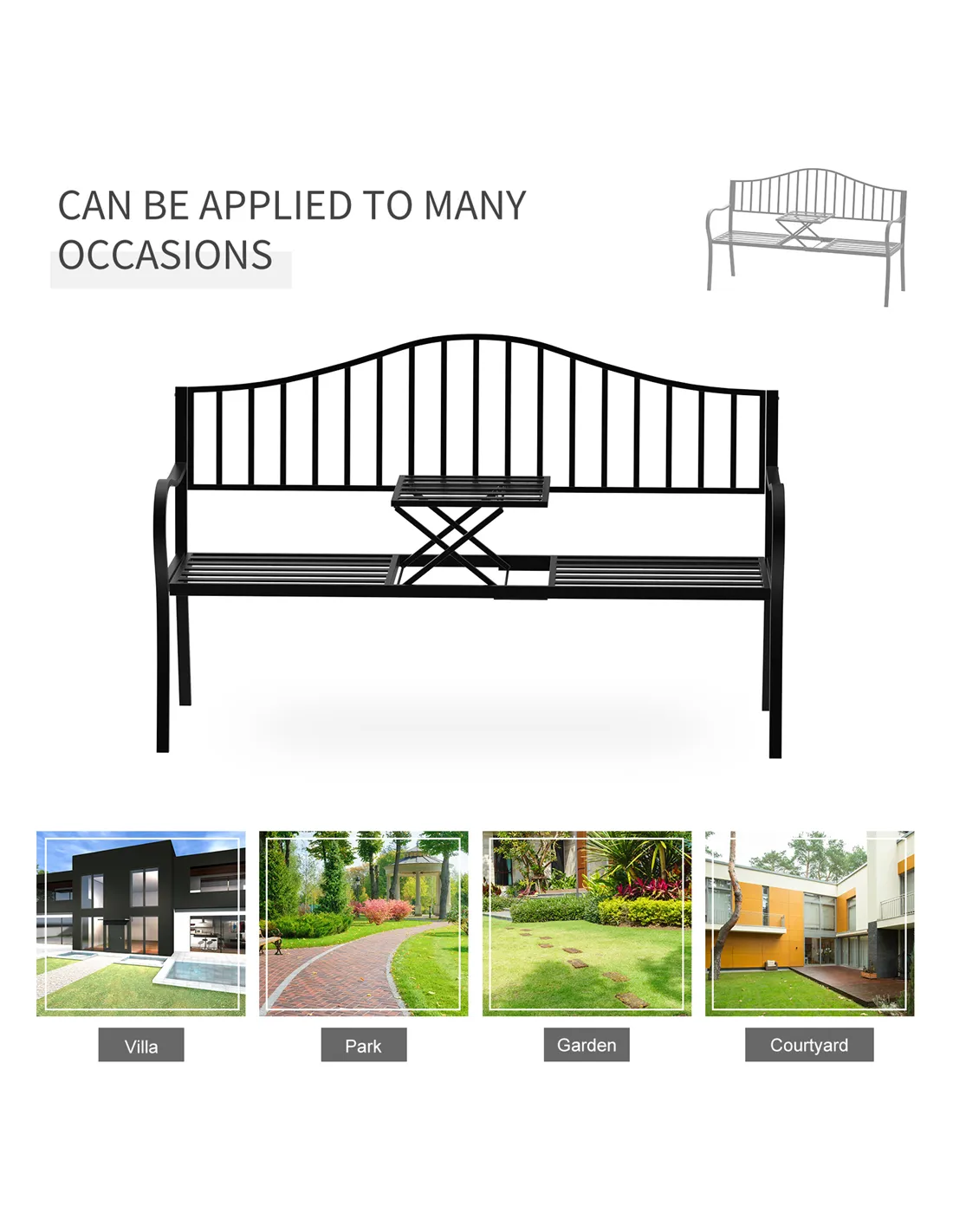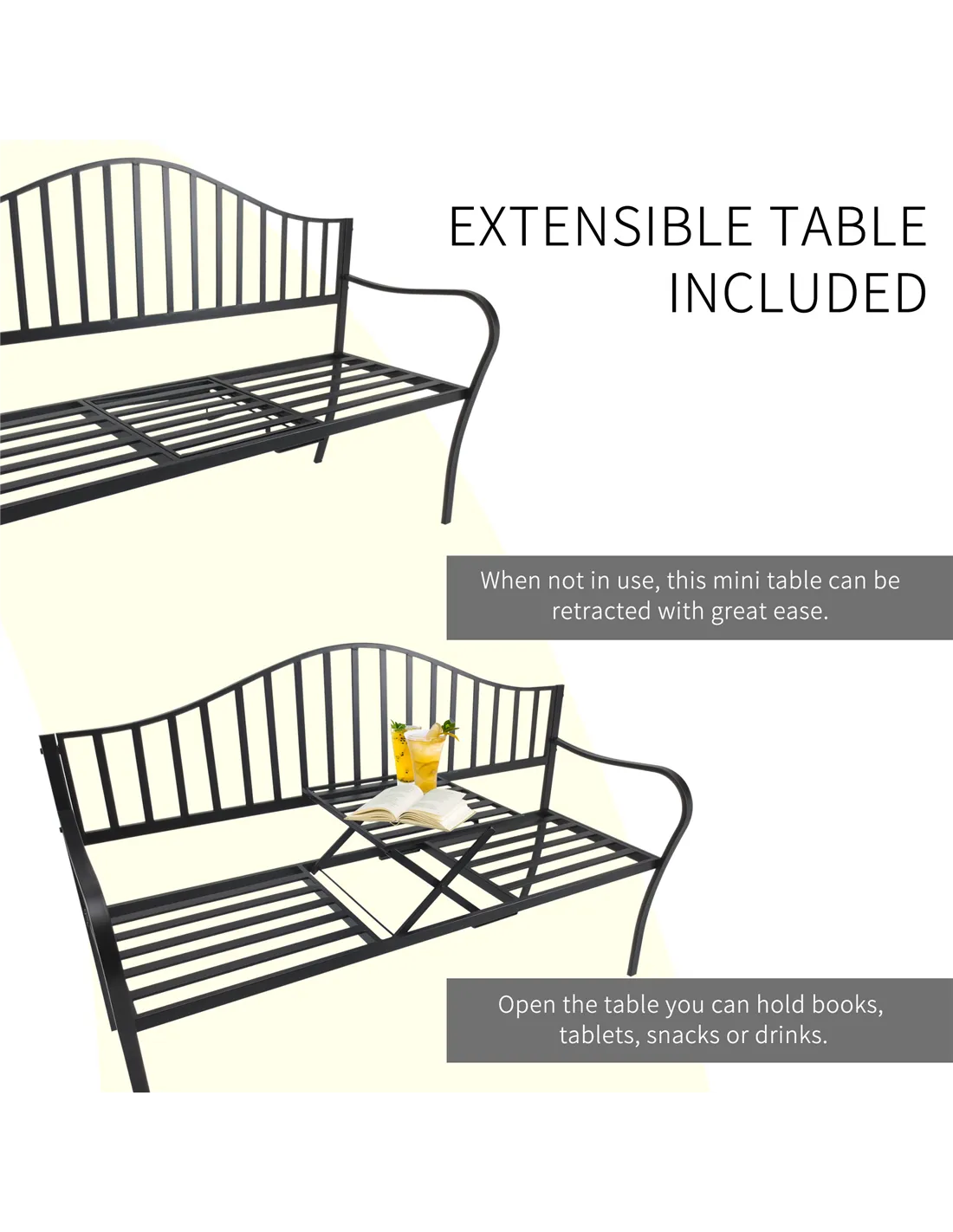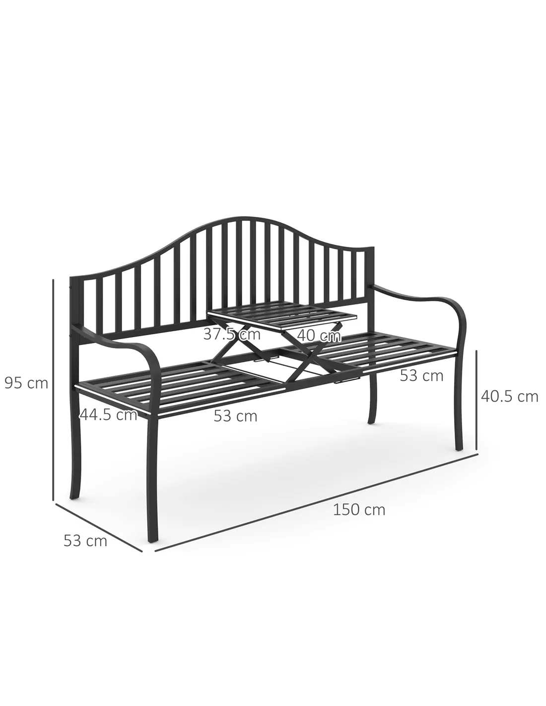 Outsunny Metal Bench W/Table, 150Lx53Wx95H cm