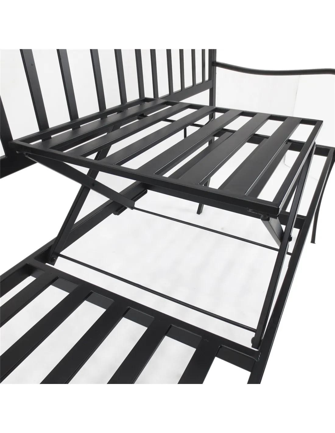 A timeless piece with a modern touch, this bench from Outsunny is a fantastic addition for those searching for something a little bit different for the garden and outdoor area. Made from a rust resistant, powder coated metal frame for strength and stability, it features a handy pull-up middle table, allowing convenient placement of food, drinks, books, magazines etc. Crafted into a slatted design for comfort, excellent air circulation and non-water build up when it rains, this bench is ideal for enjoying a lunch in the sun with a friend.
