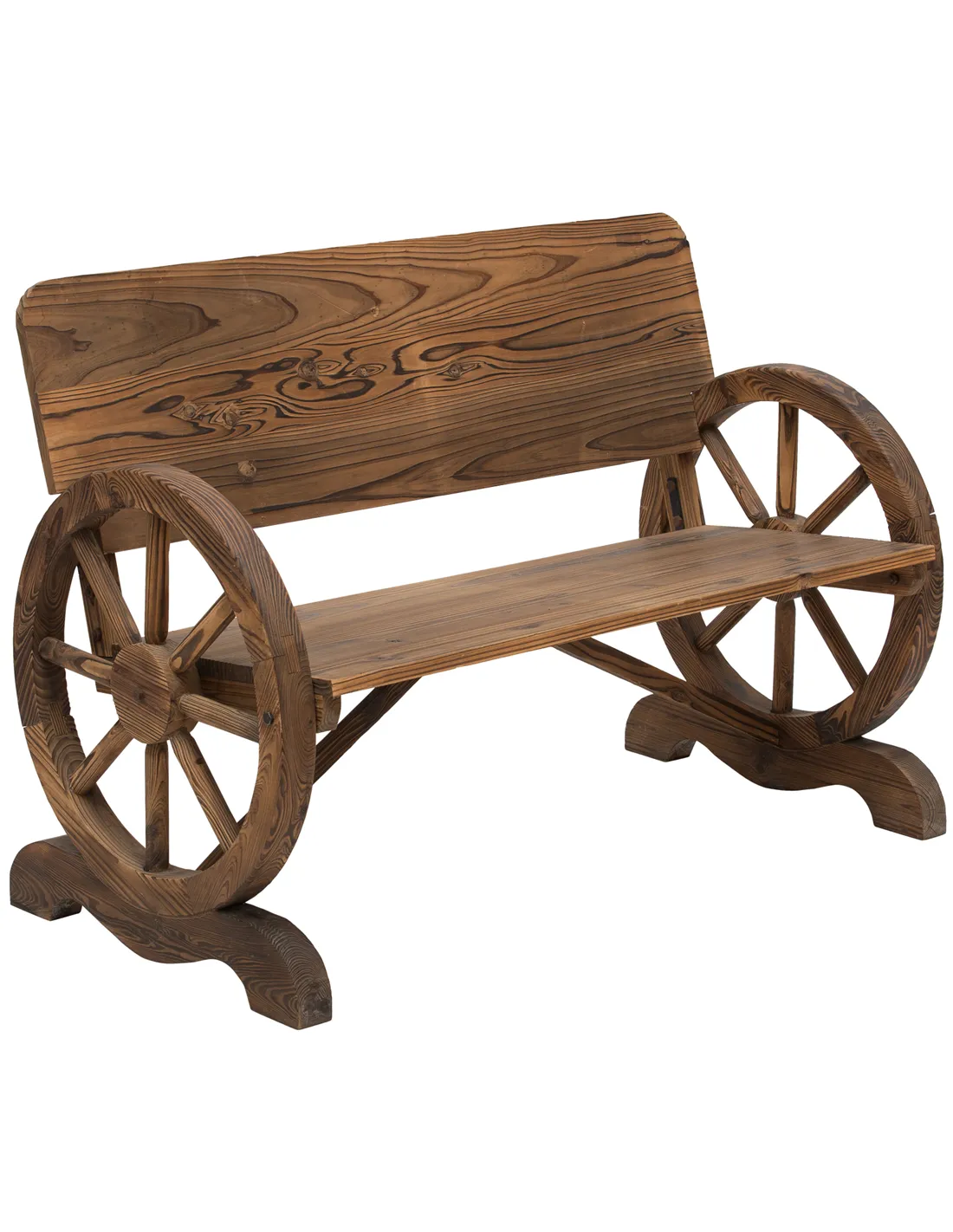 Outsunny Fir Wood 2-Seater Outdoor Garden Wagon Wheel Bench