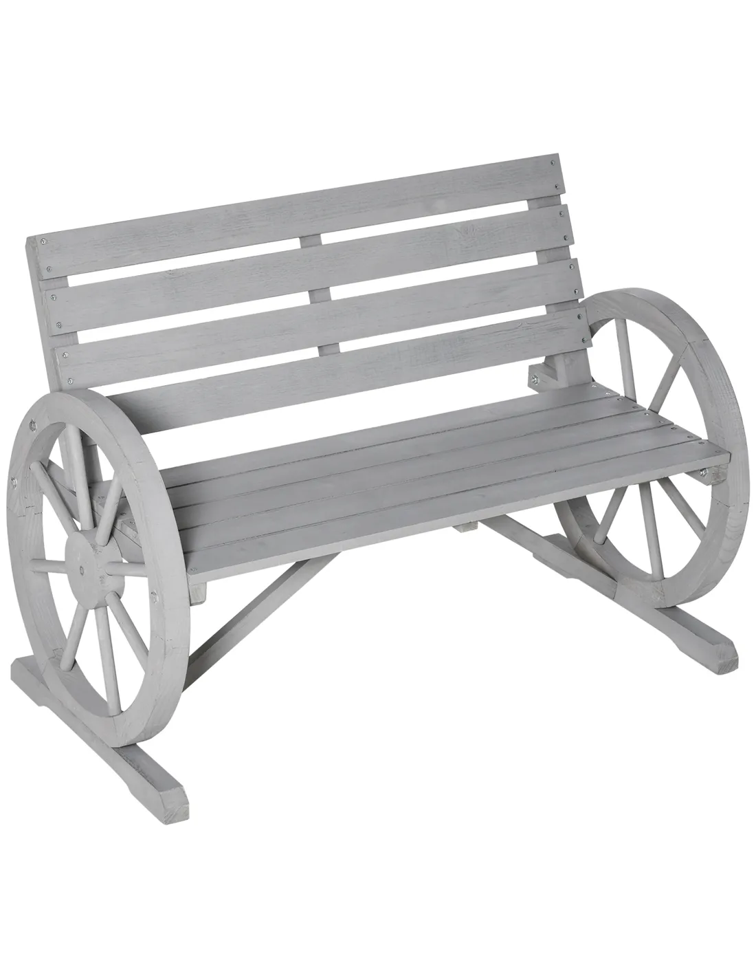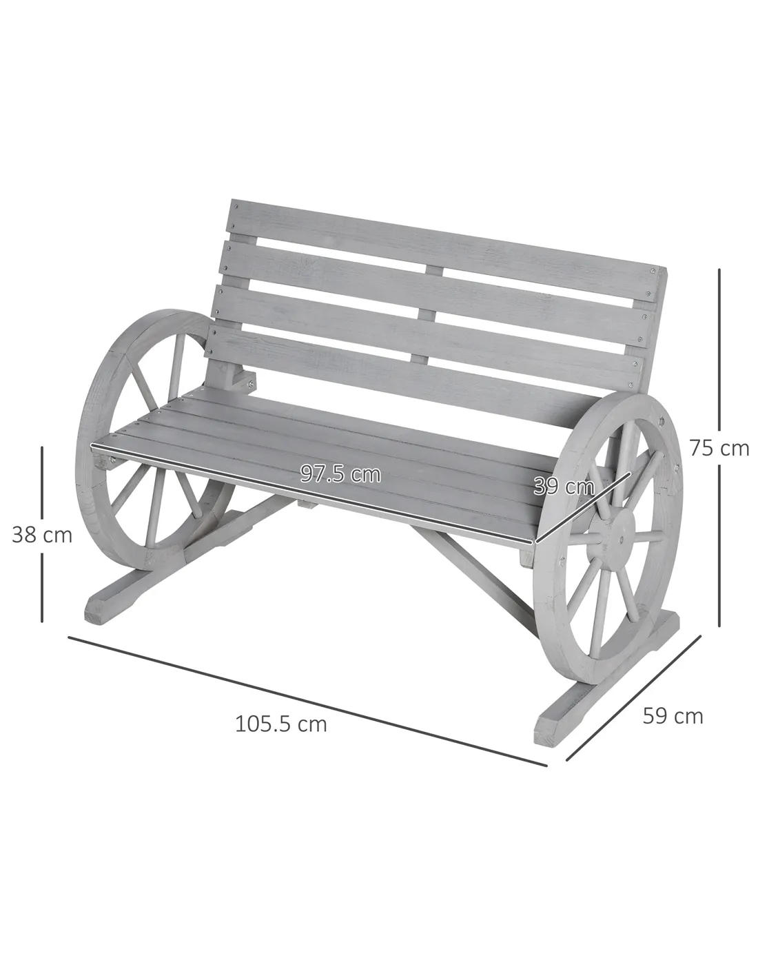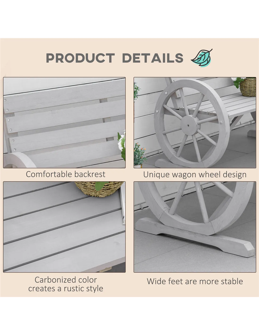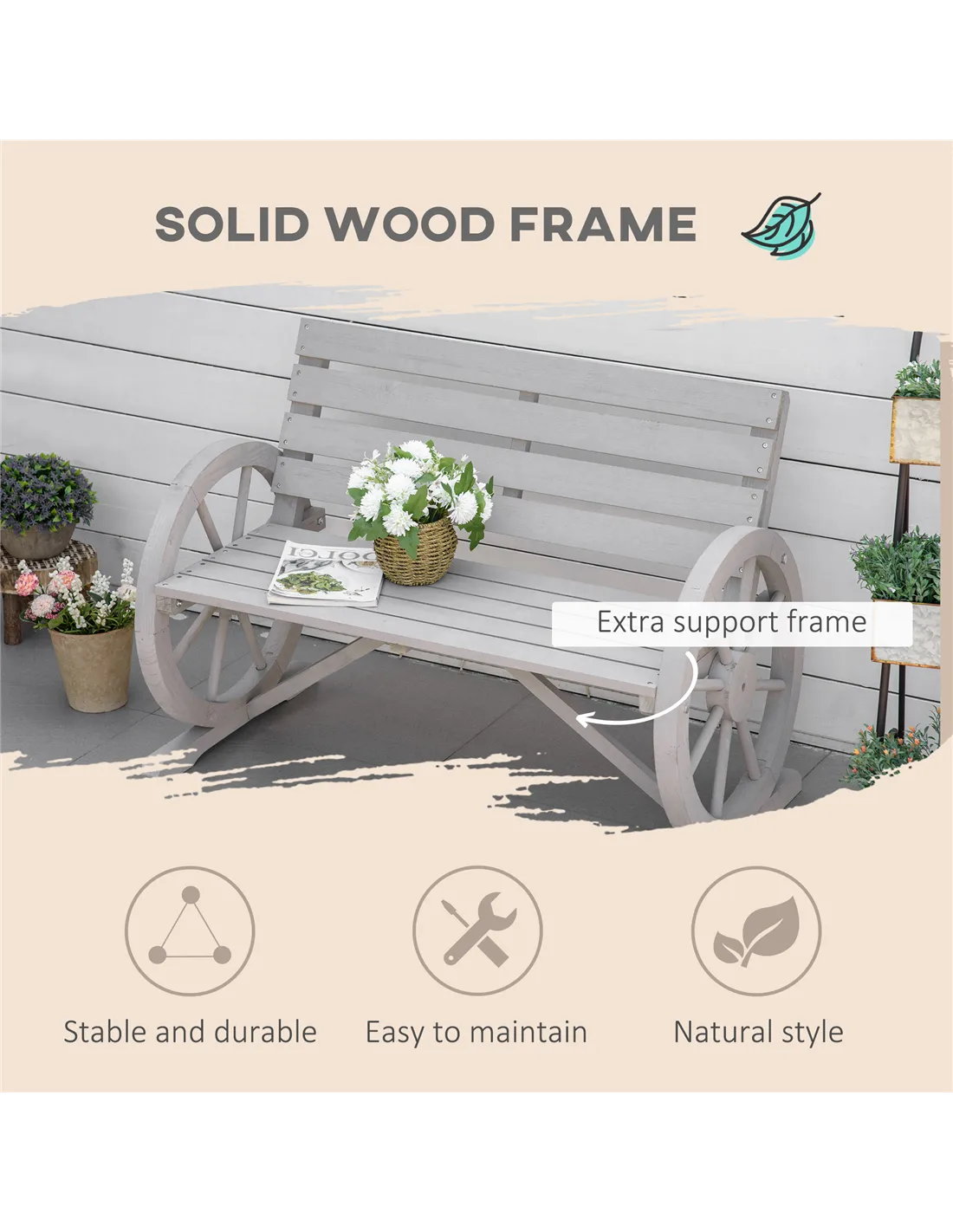 Outsunny Wooden Cart Wagon Wheel 2 Seater Garden Bench Outdoor Garden Armrest Chair Rustic High Back Loveseat Grey