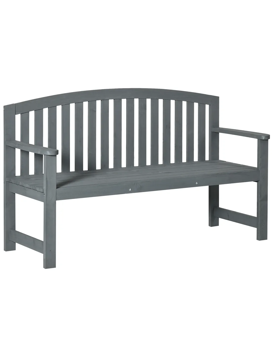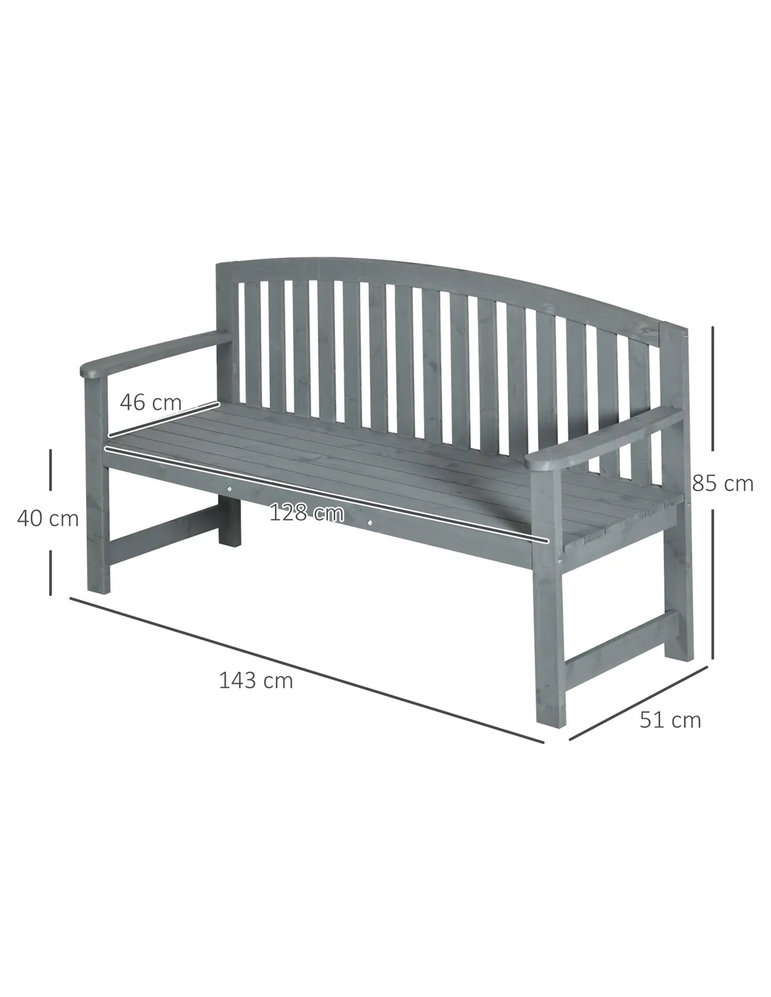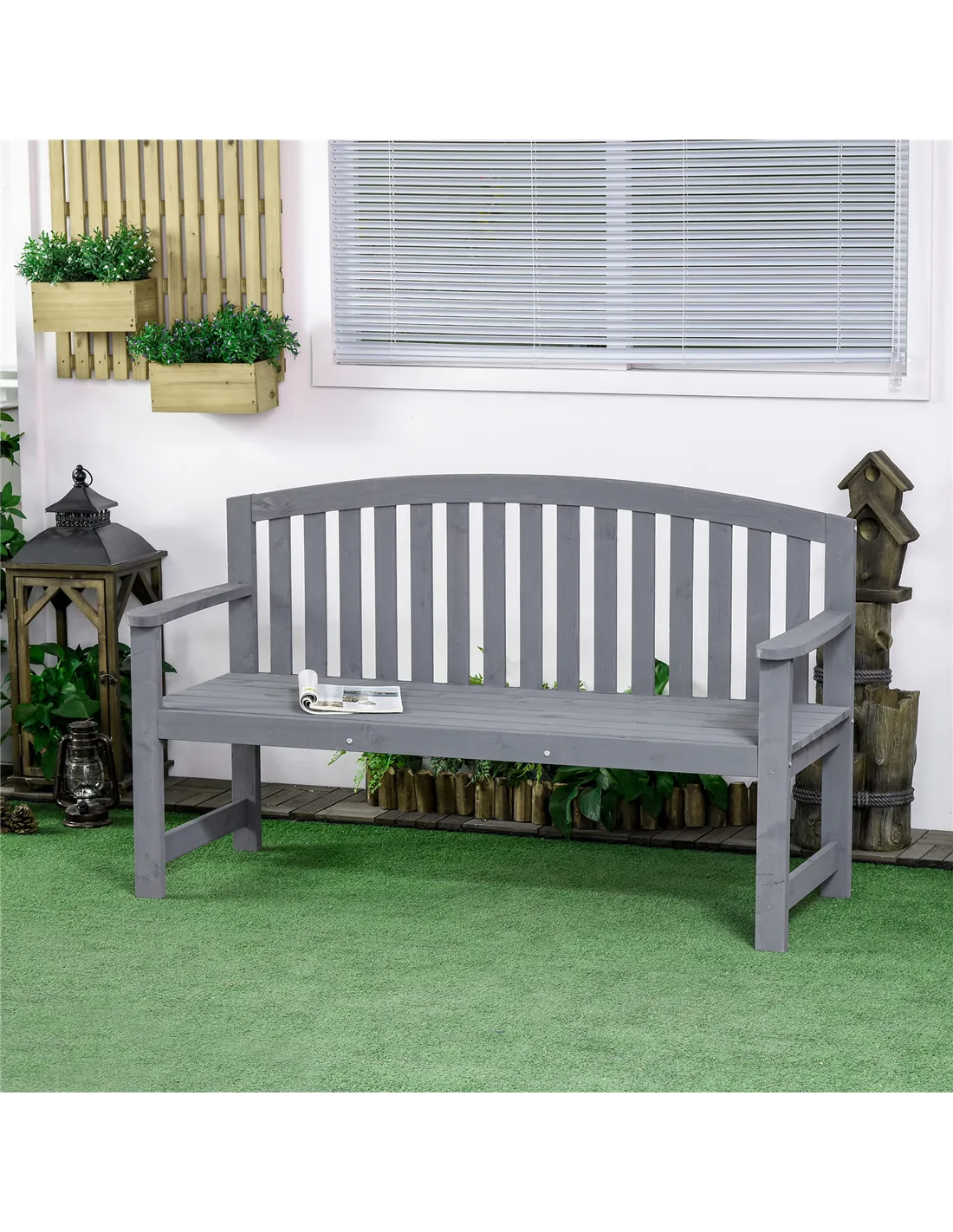 Outsunny 2 Seater Wooden Garden Bench with Armrest, Outdoor Furniture Chair for Park, Balcony, Grey