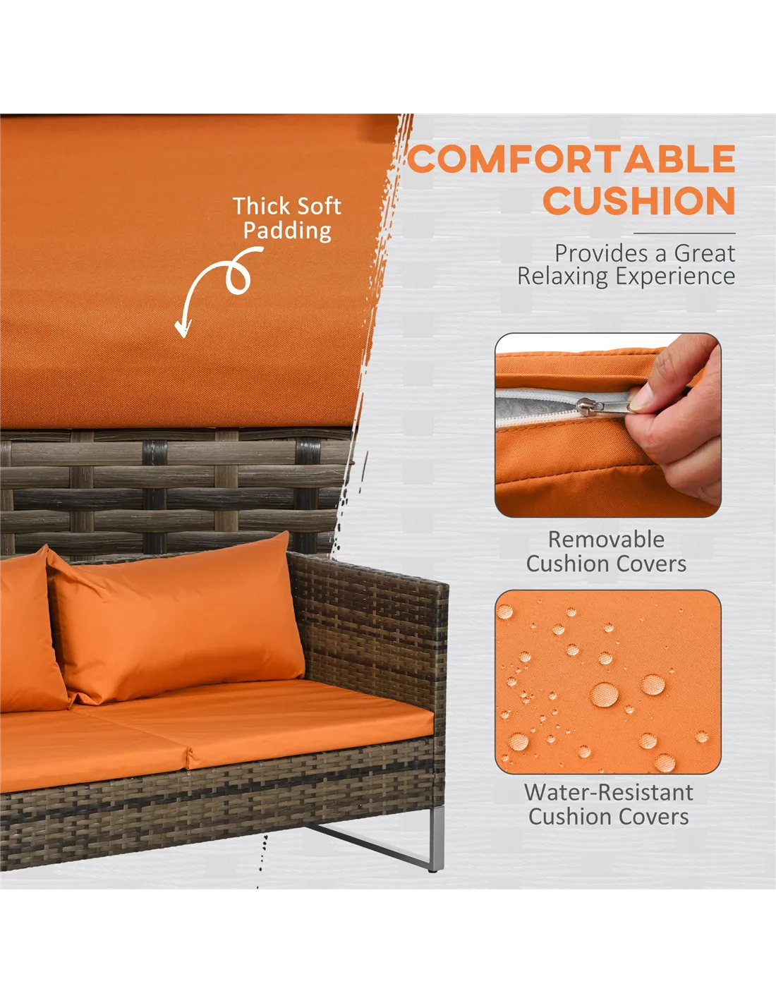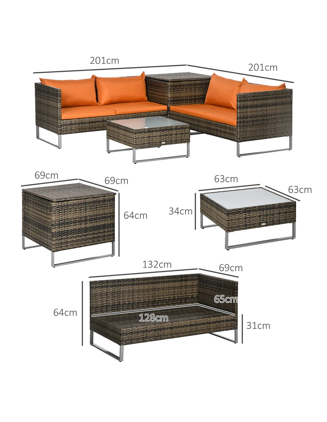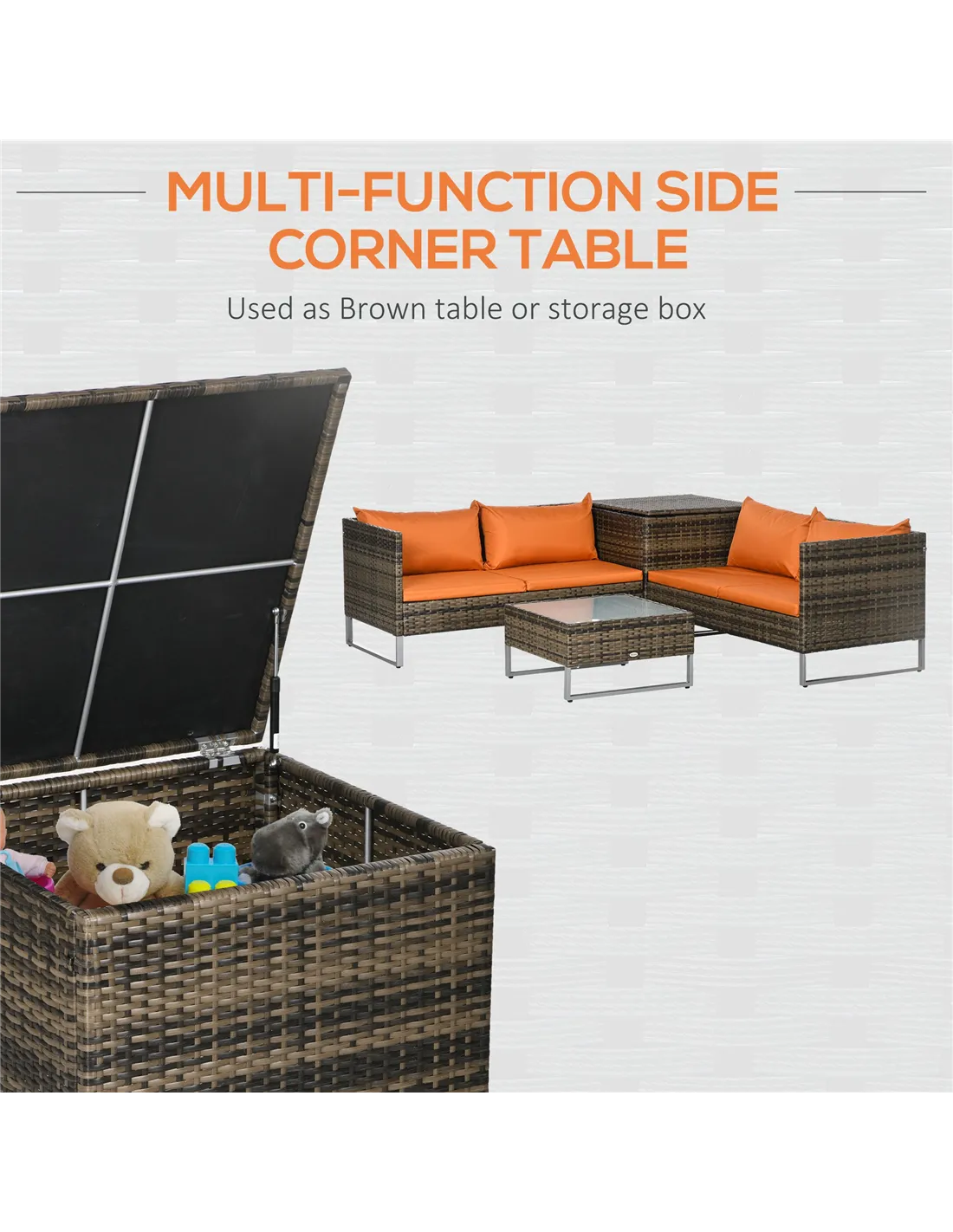 Outsunny Four-Piece Rattan Sofa Set, with Storage Table - Orange/Brown