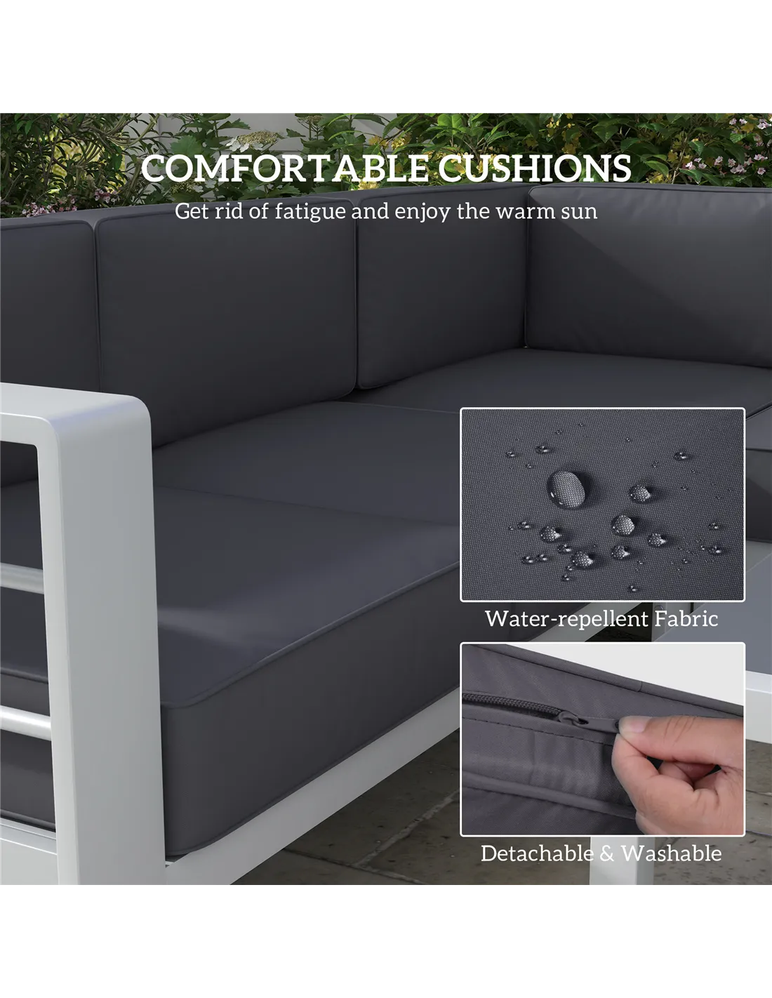Outsunny Five-Piece Aluminium Garden Sofa Set, with Glass-Top Table - Grey