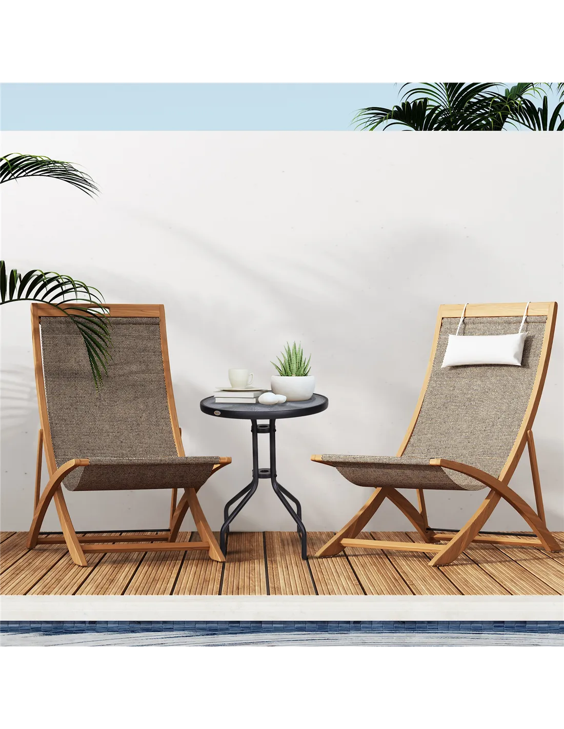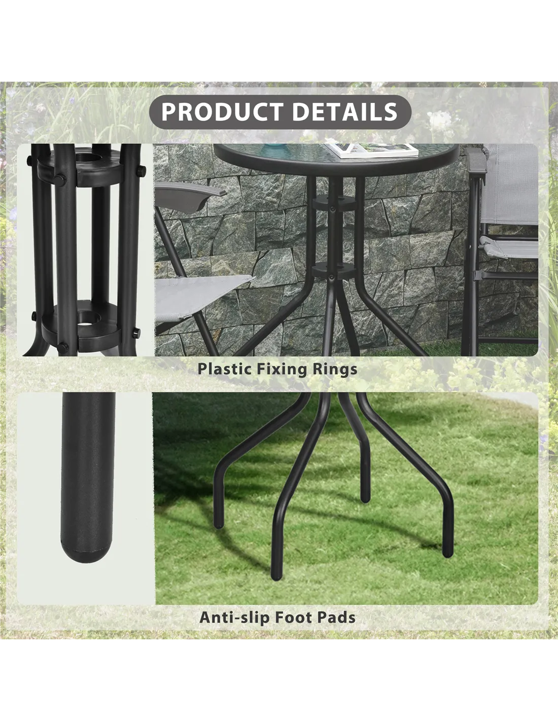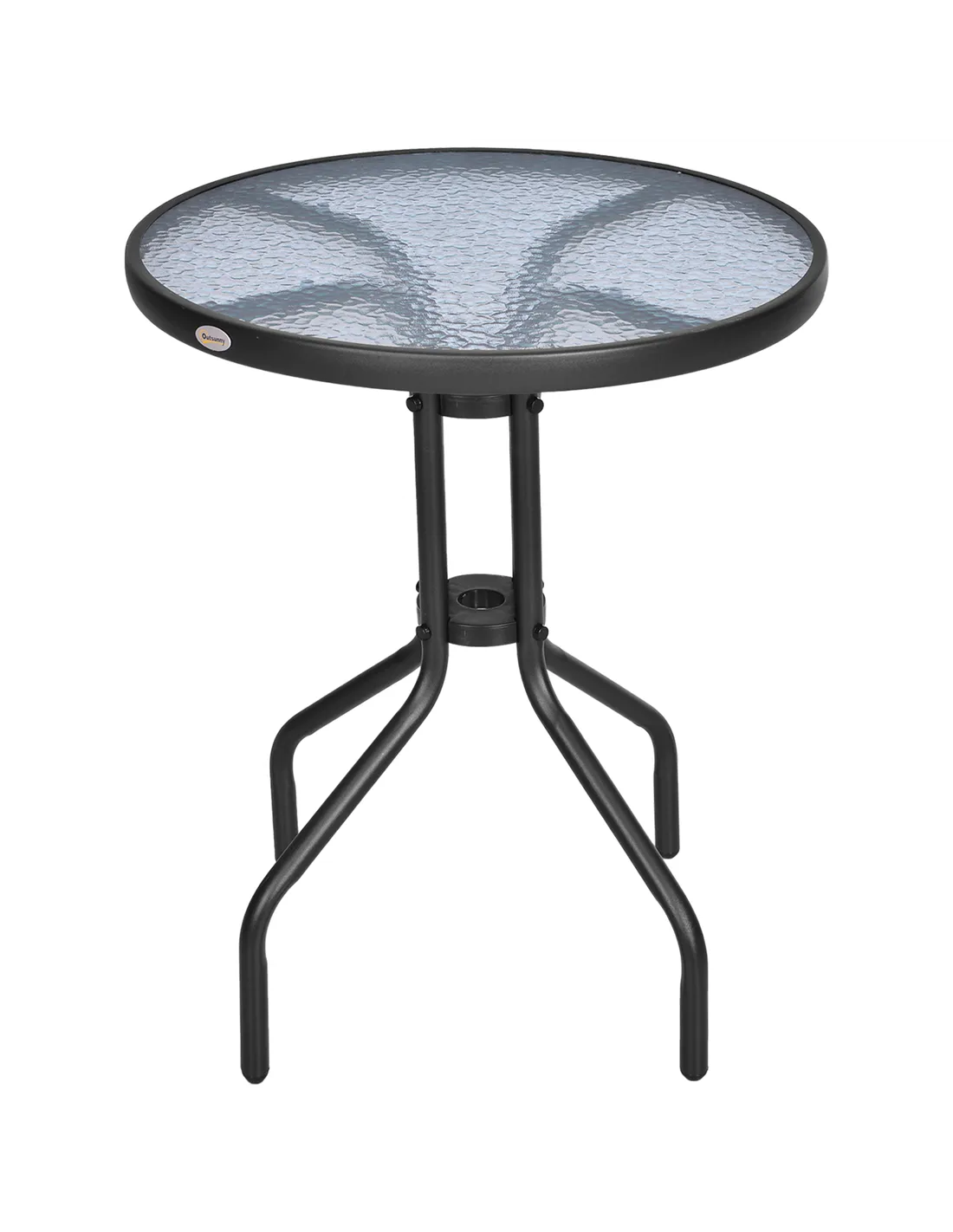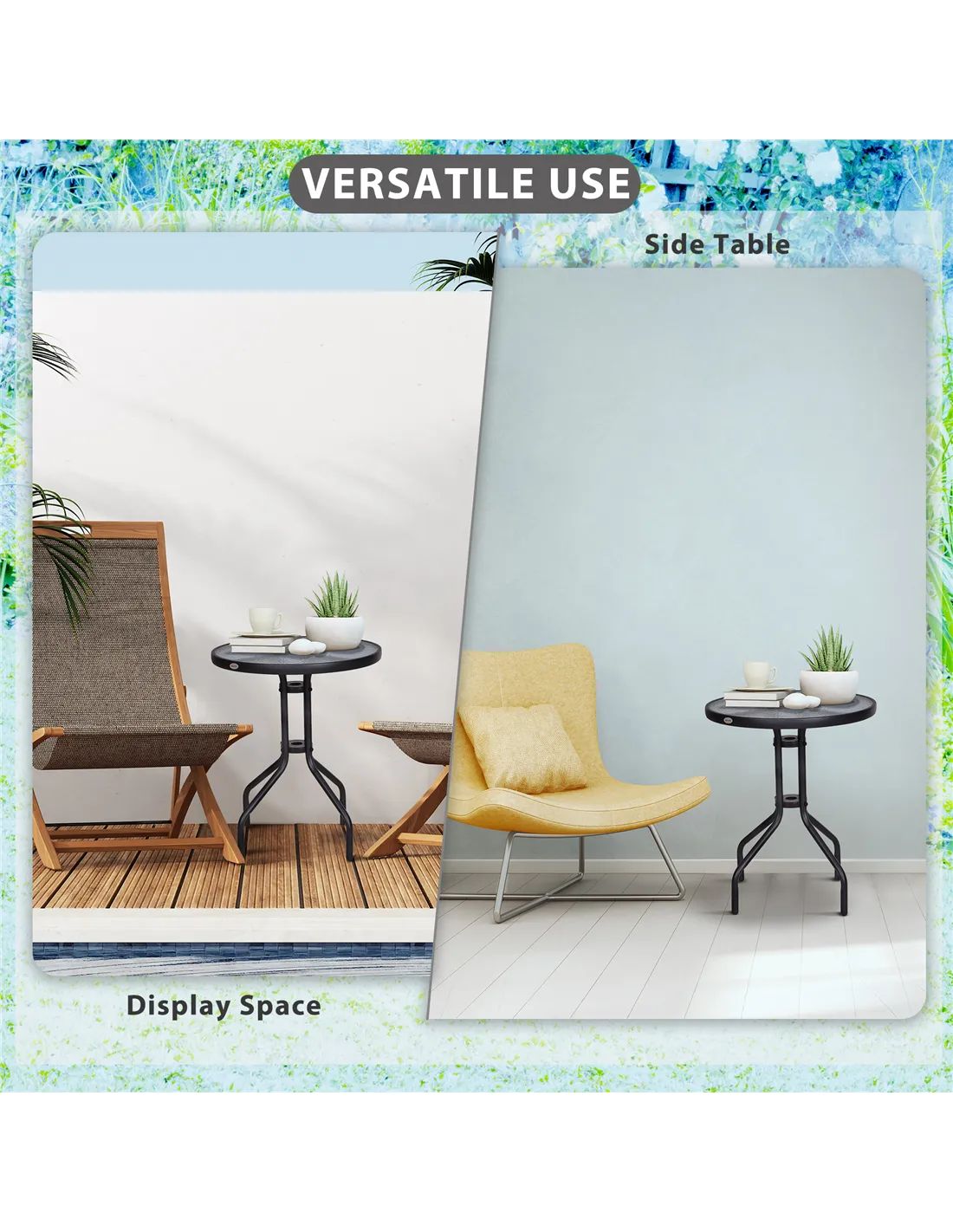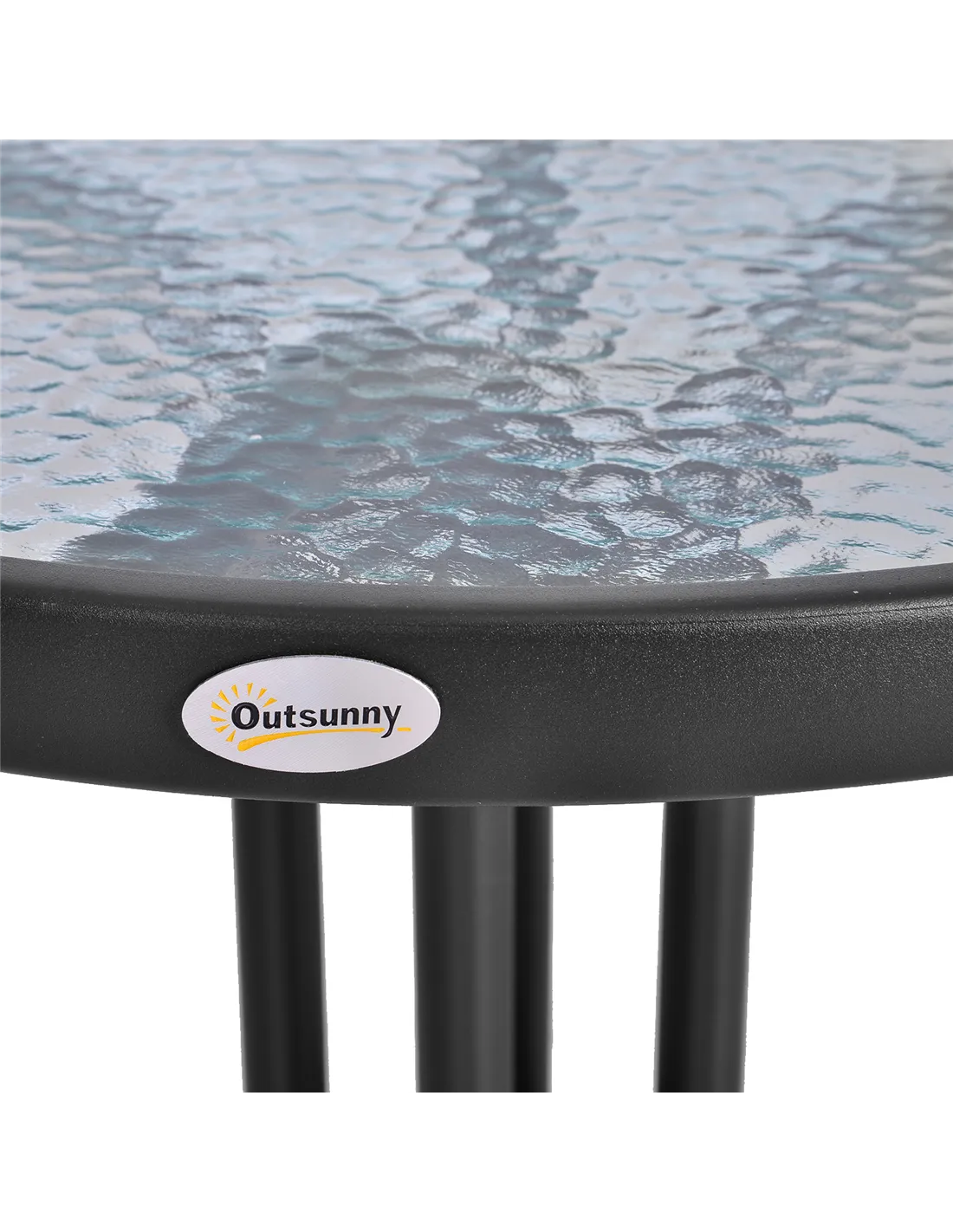 Outsunny Bistro Coffee Table Outdoor Tempered Glass Top Table Garden Round Dining Table - 60cm Diameter