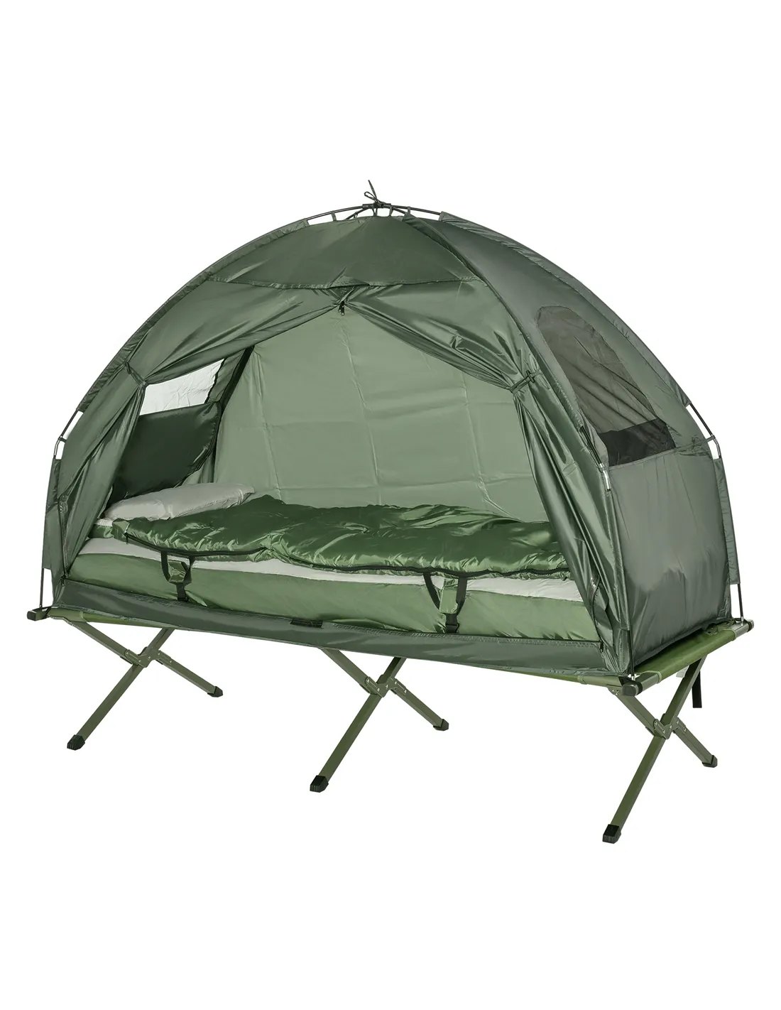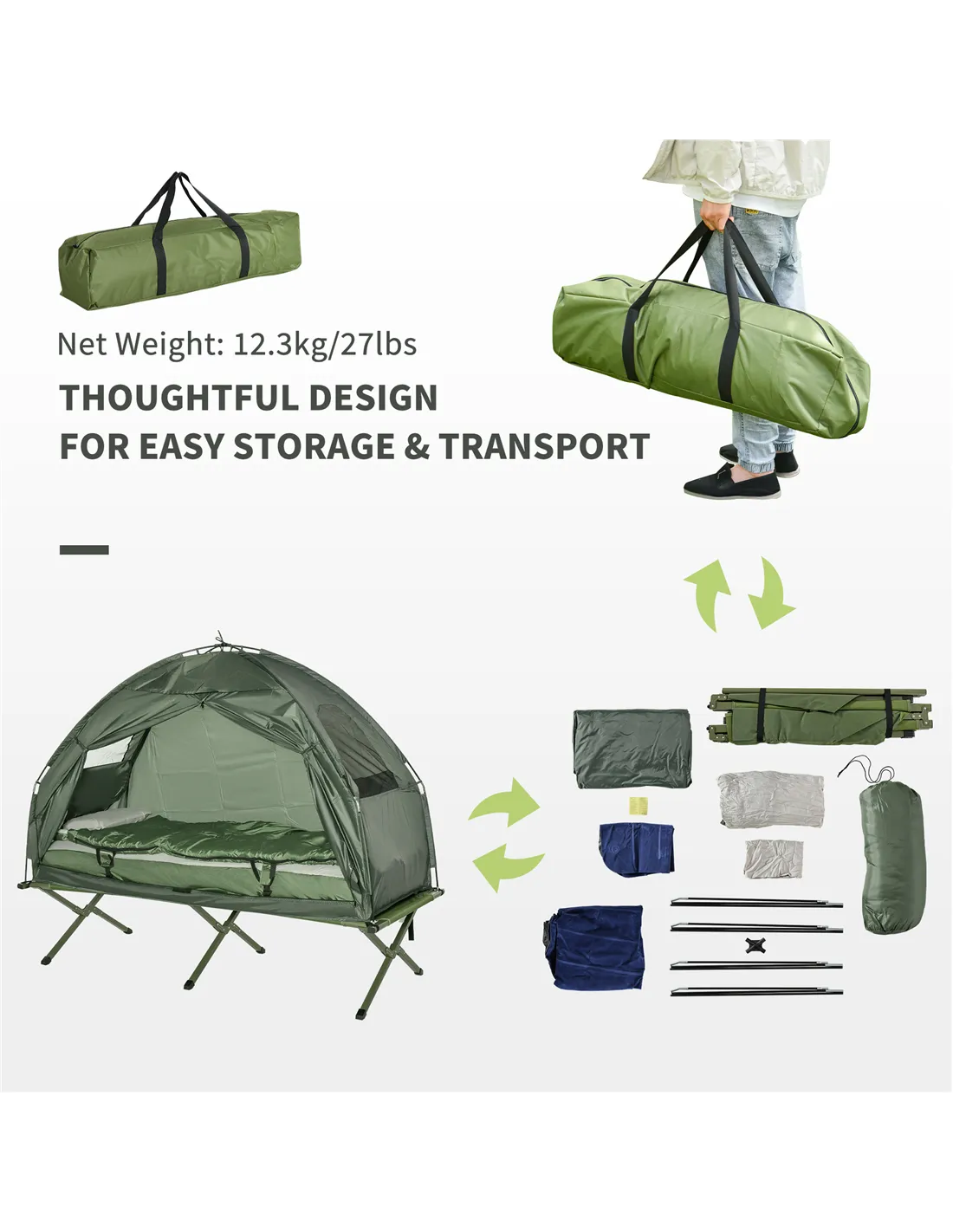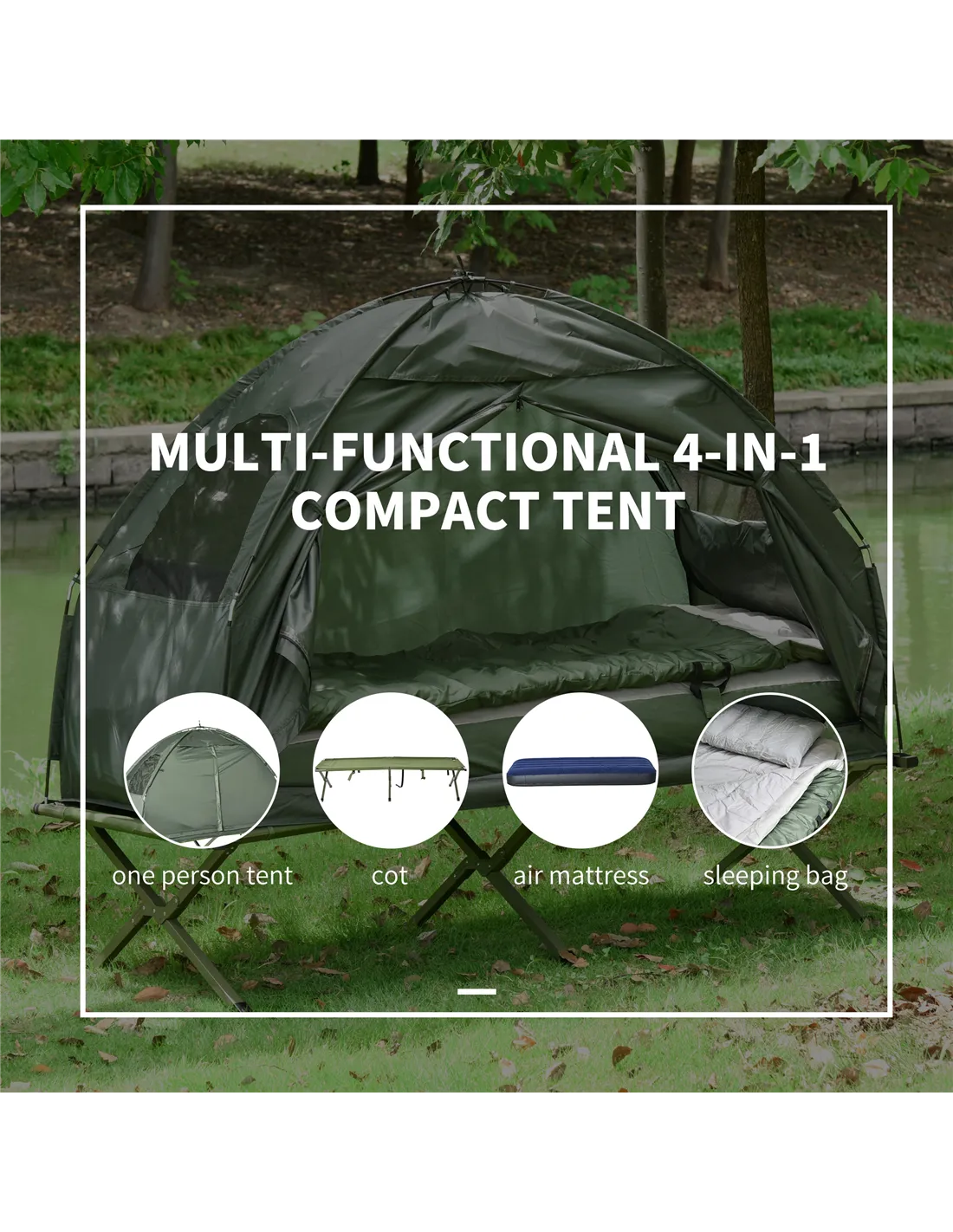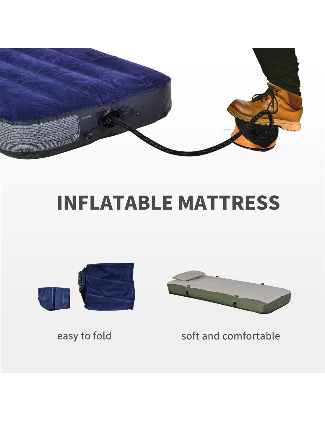 Outsunny 1 person Foldable Camping Tent w/Sleeping Bag Air Mattress Outdoor Hiking Picnic Bed cot w/Foot Pump