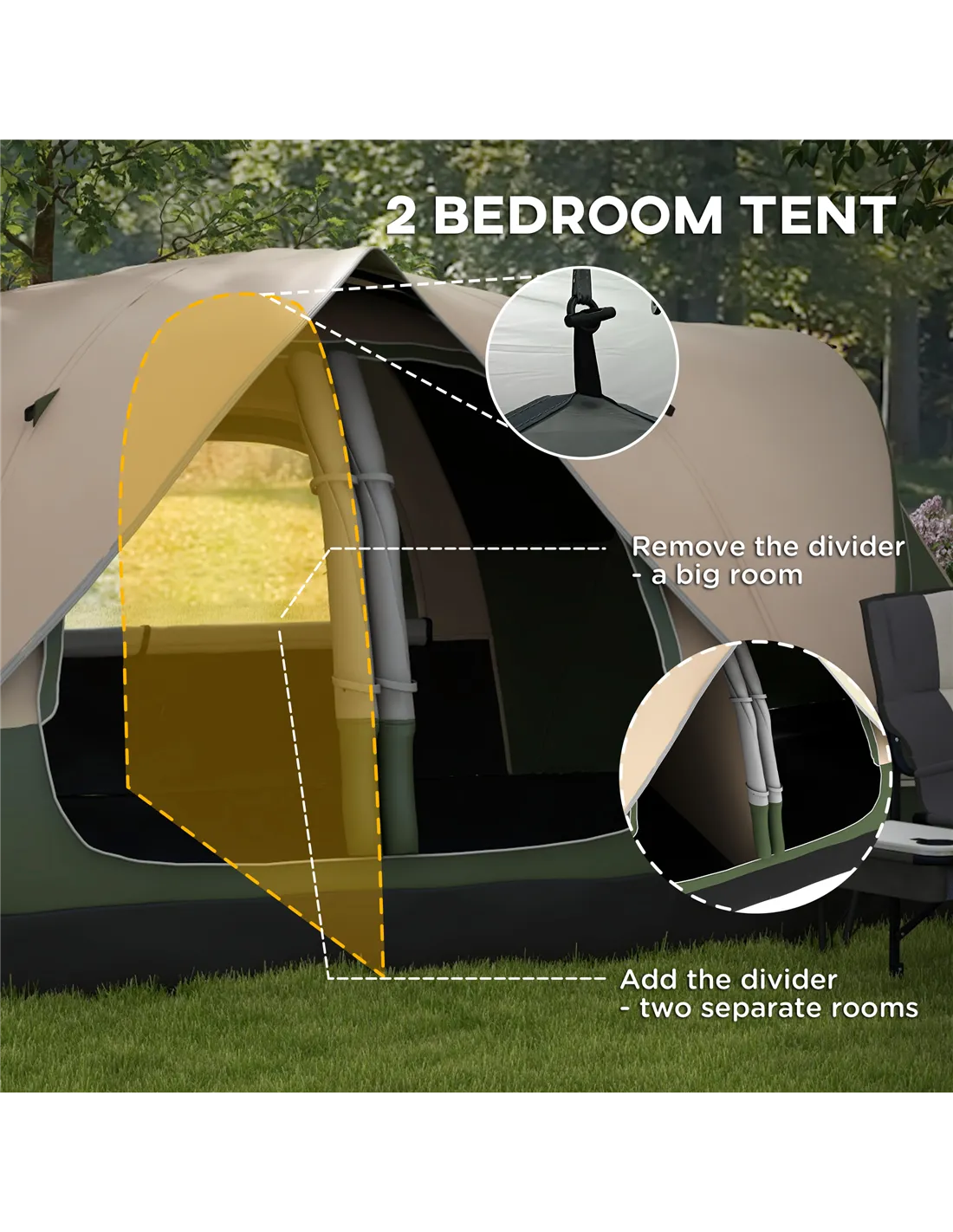 Outsunny Camping Tent for 6-8 Man with 2000mm Waterproof Rainfly and Carry Bag for Fishing Hiking Festival, Dark Green