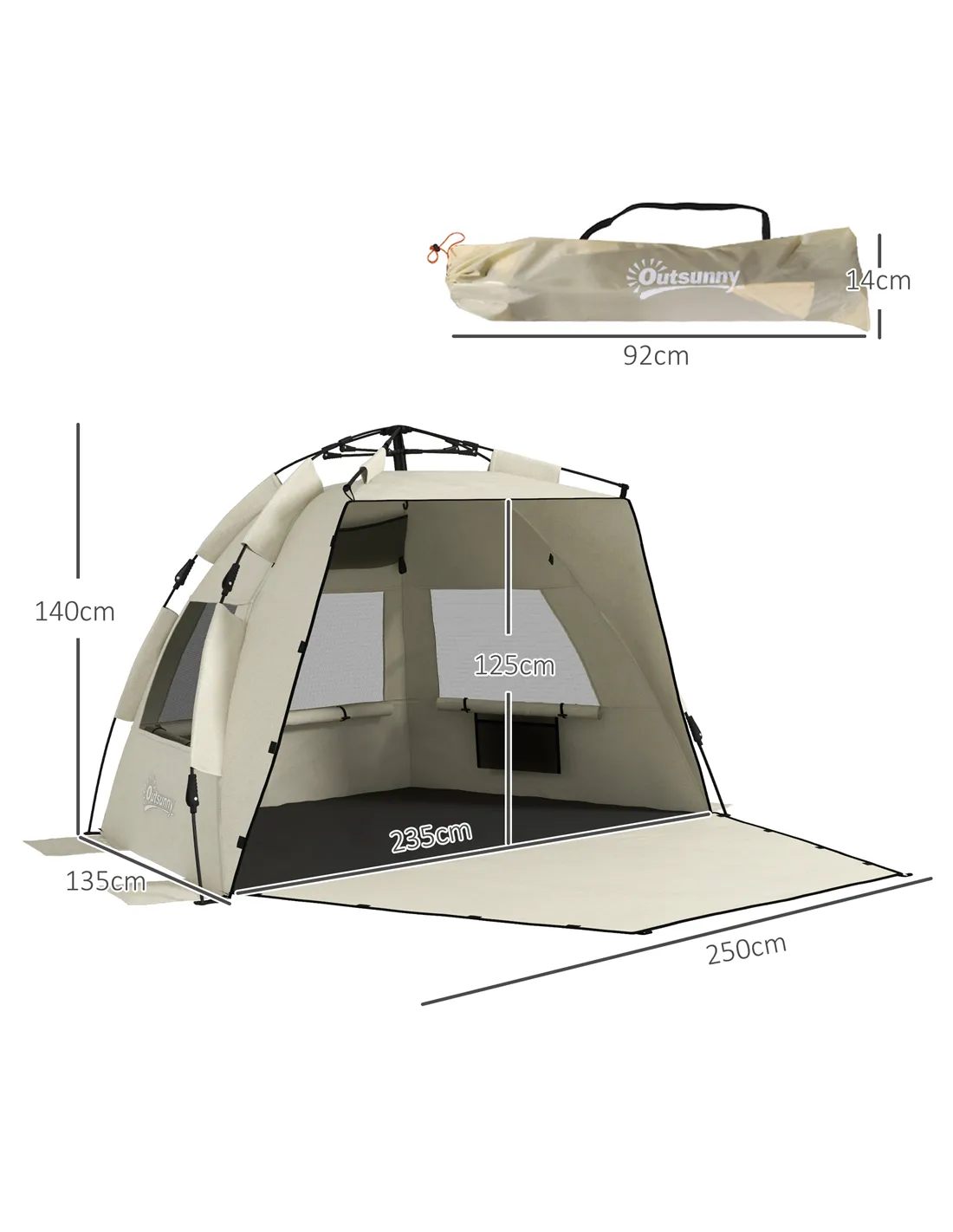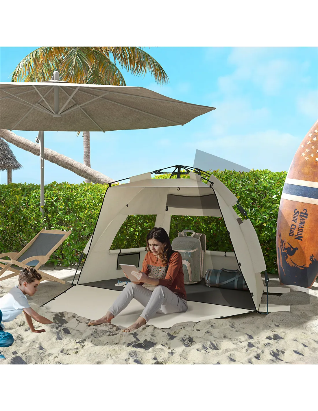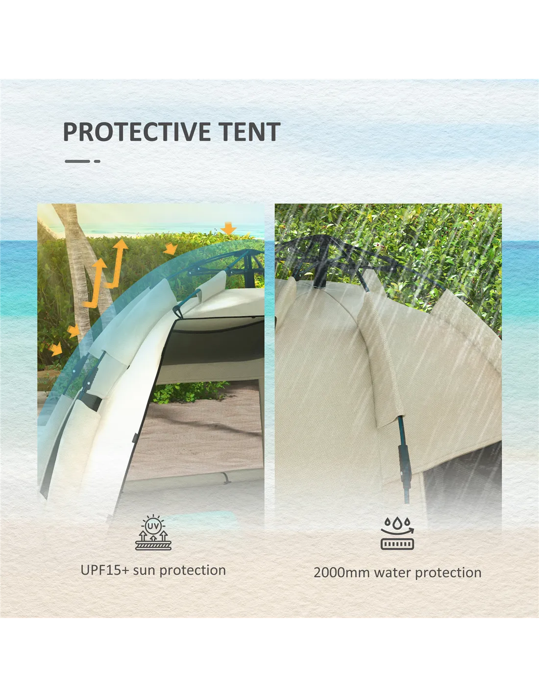 - Ideal for family days at the beach, providing reliable sun protection with UPF15+ fabric and ample space for up to three people.