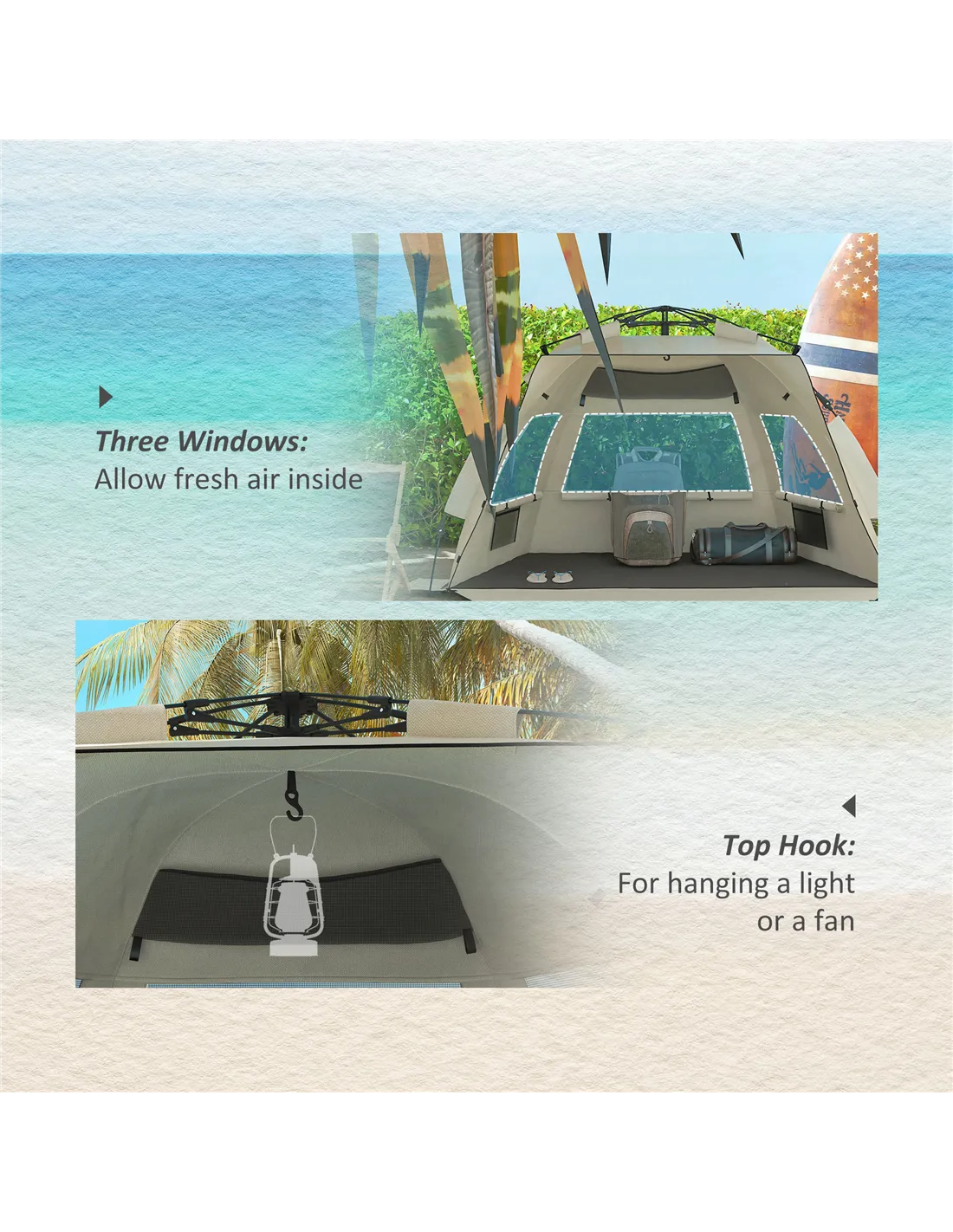 - Perfect for picnics in parks or outdoor festivals, offering a comfortable shaded area with ventilation through mesh windows and door.