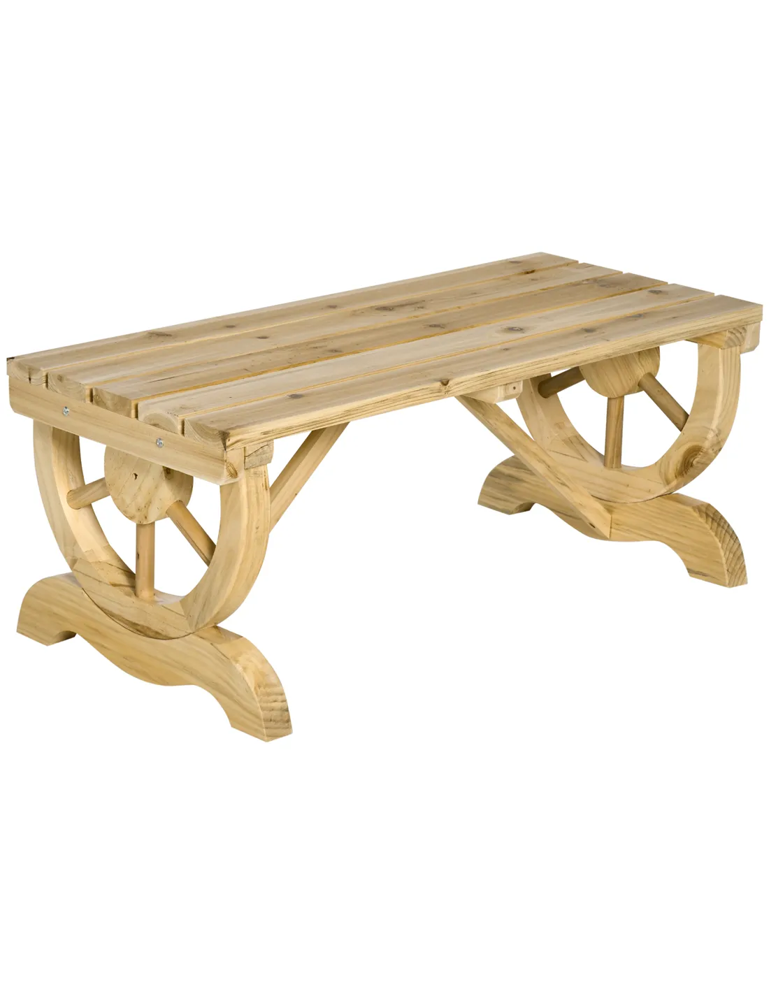 Something different and subtly decorative for the outdoors. This Outsunny two-seater bench features a wheel on each side for a unique look - bringing character into relaxation times. Made from fir wood, this is a durable piece suitable for outdoor use; left natural to allow you to decorate how you want. The two-seater armless design offers plenty of seated room.
