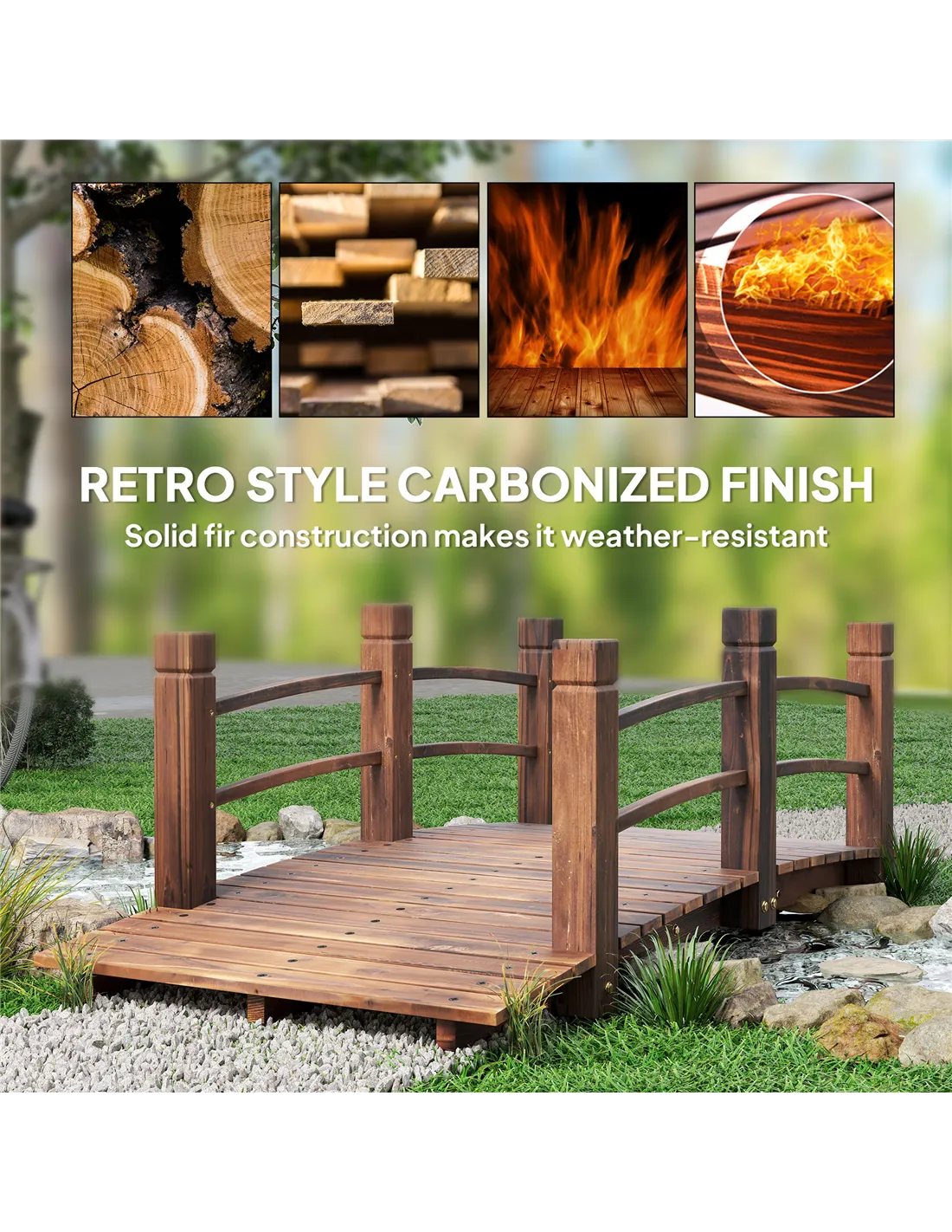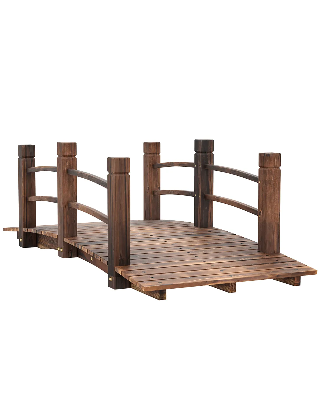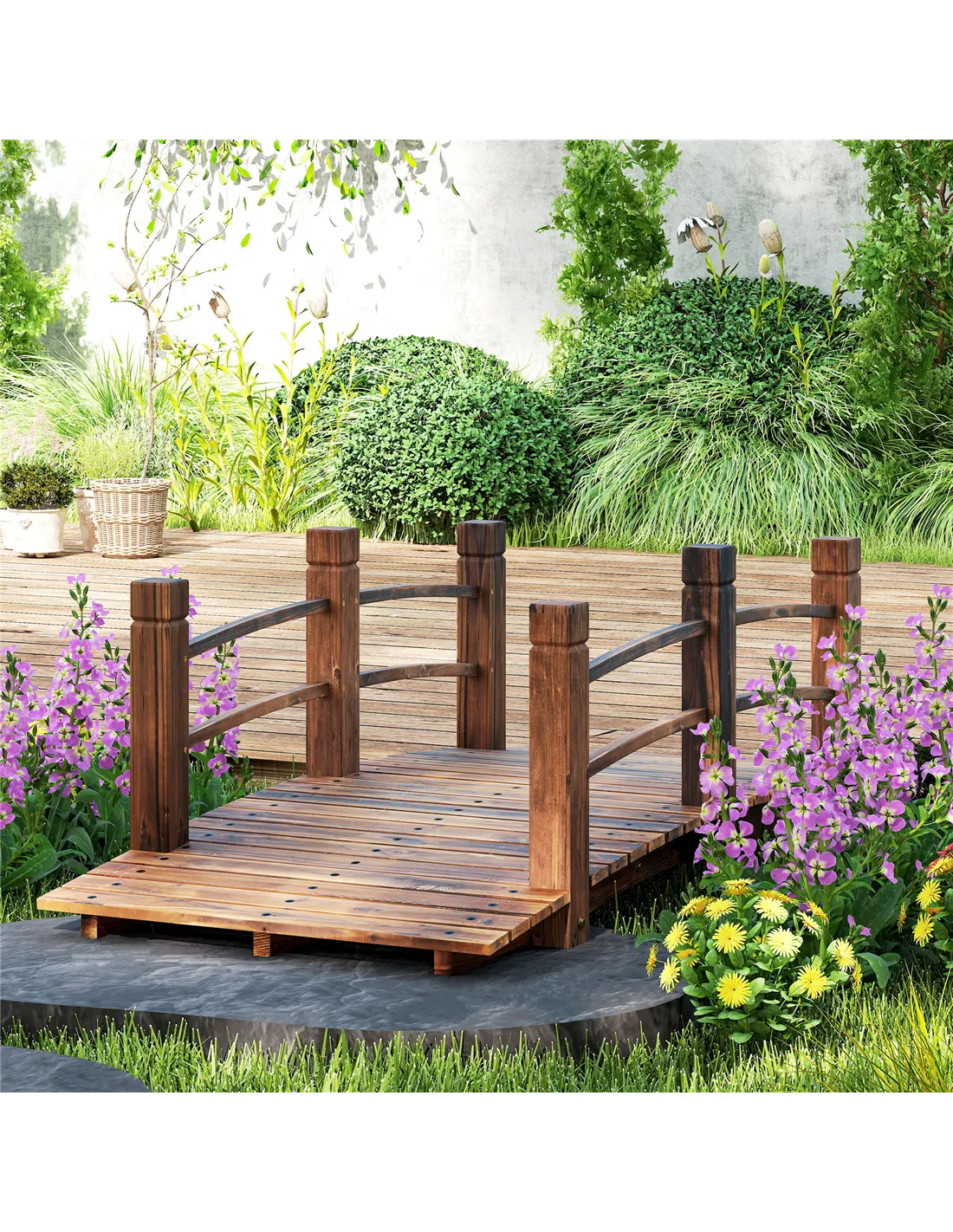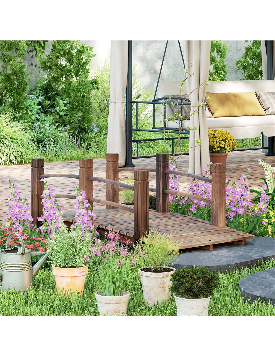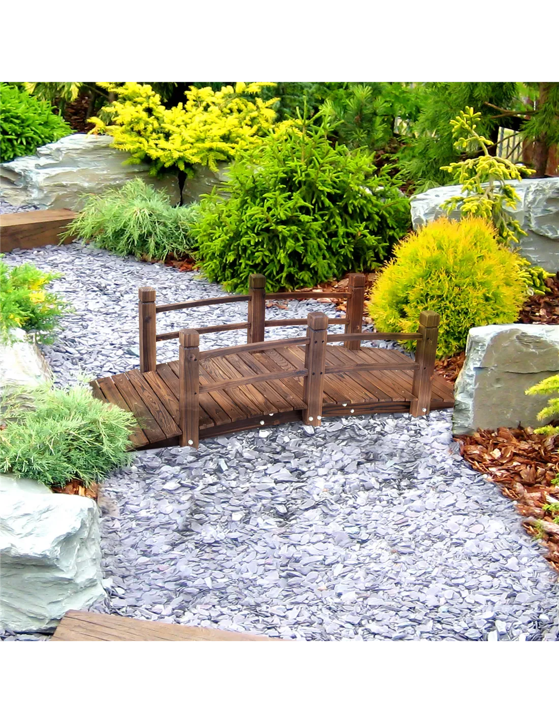 Outsunny 1.5M Wooden Garden Bridge Lawn Décor Stained Finish Arc Outdoor Pond Walkway w/ Railings Water Yard Decoration
