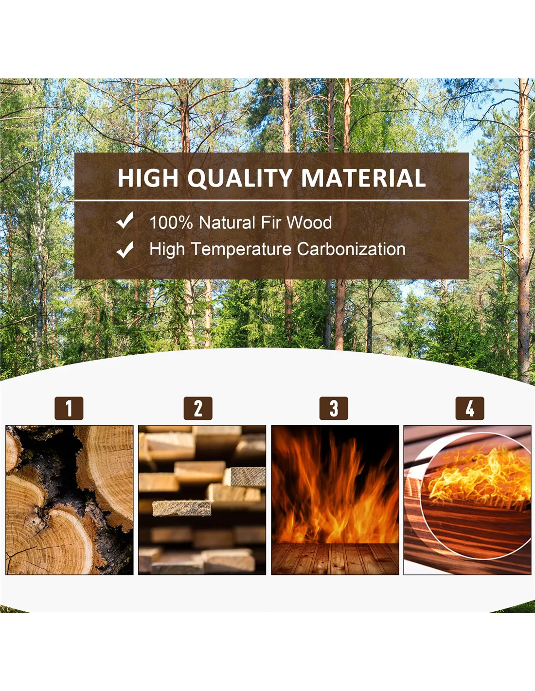 - Carbonized fir wood is suitable for outdoor use