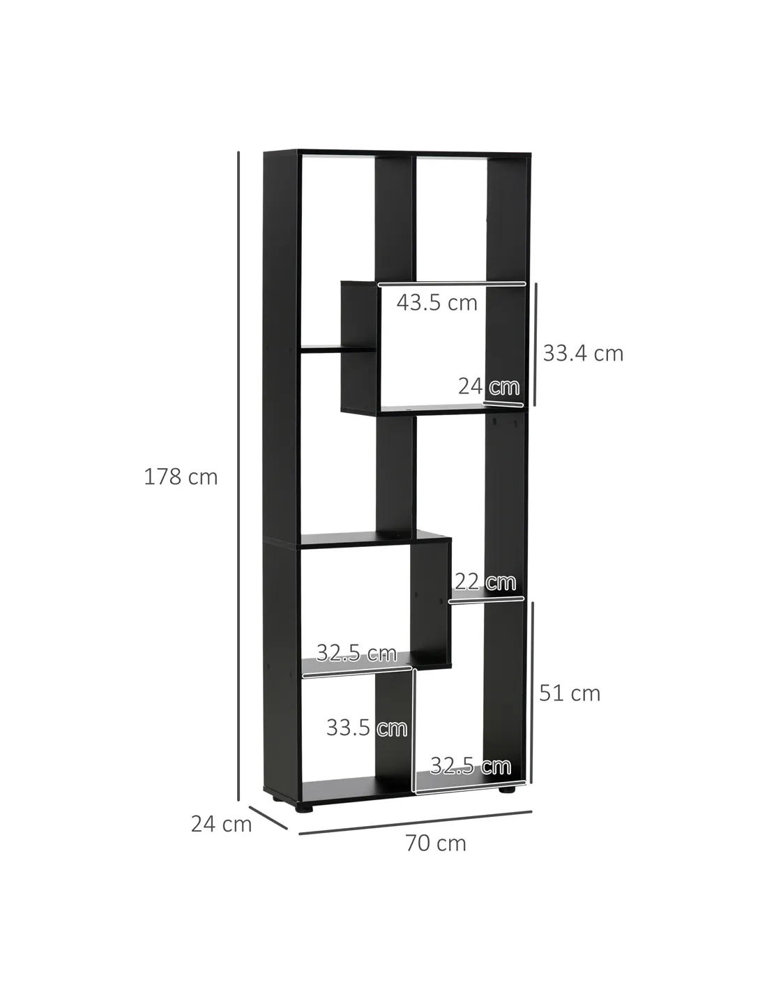 - A simple and beautiful design, featuring eight differently sized shelves placed together for a stand-out look