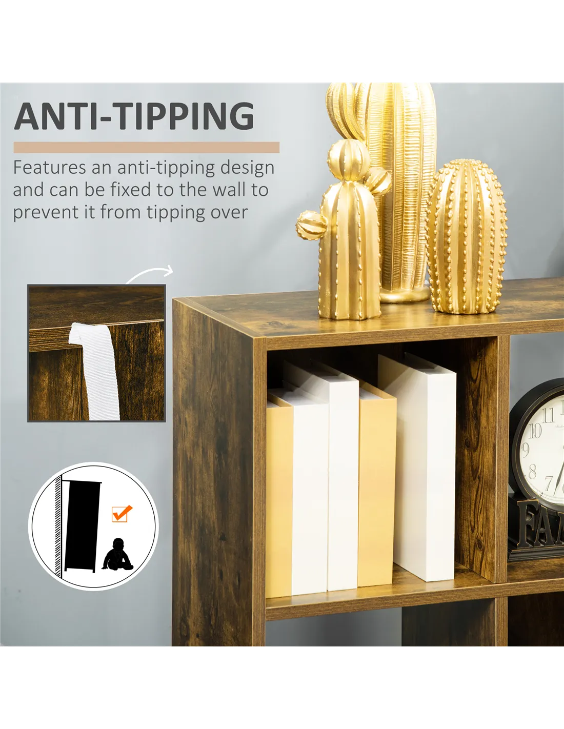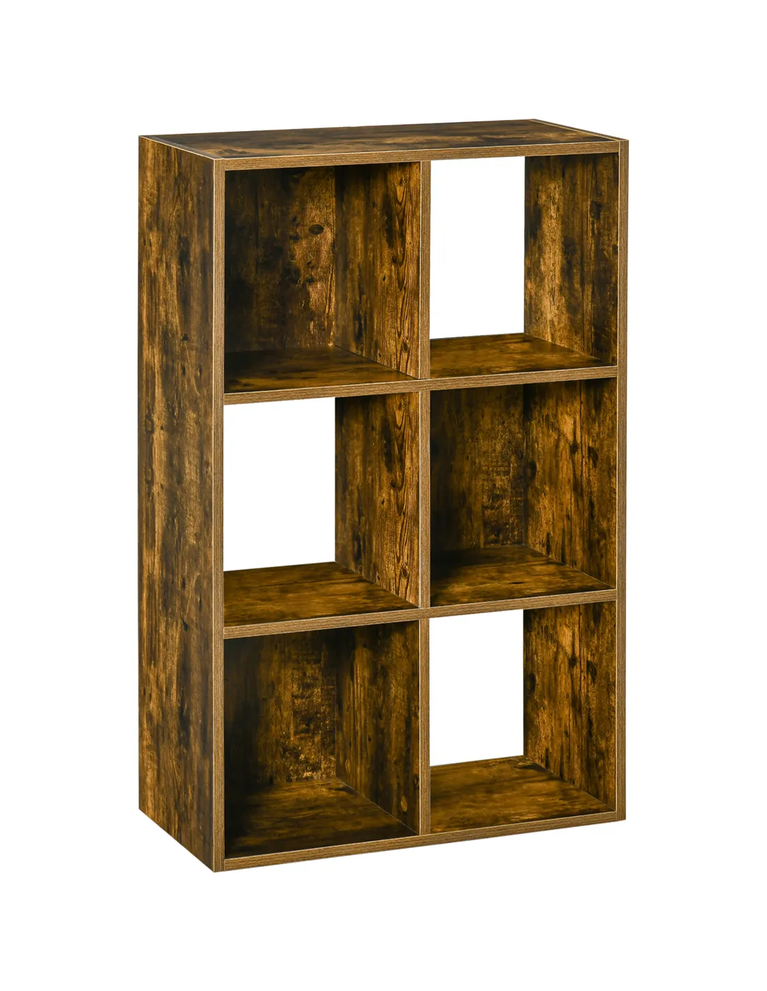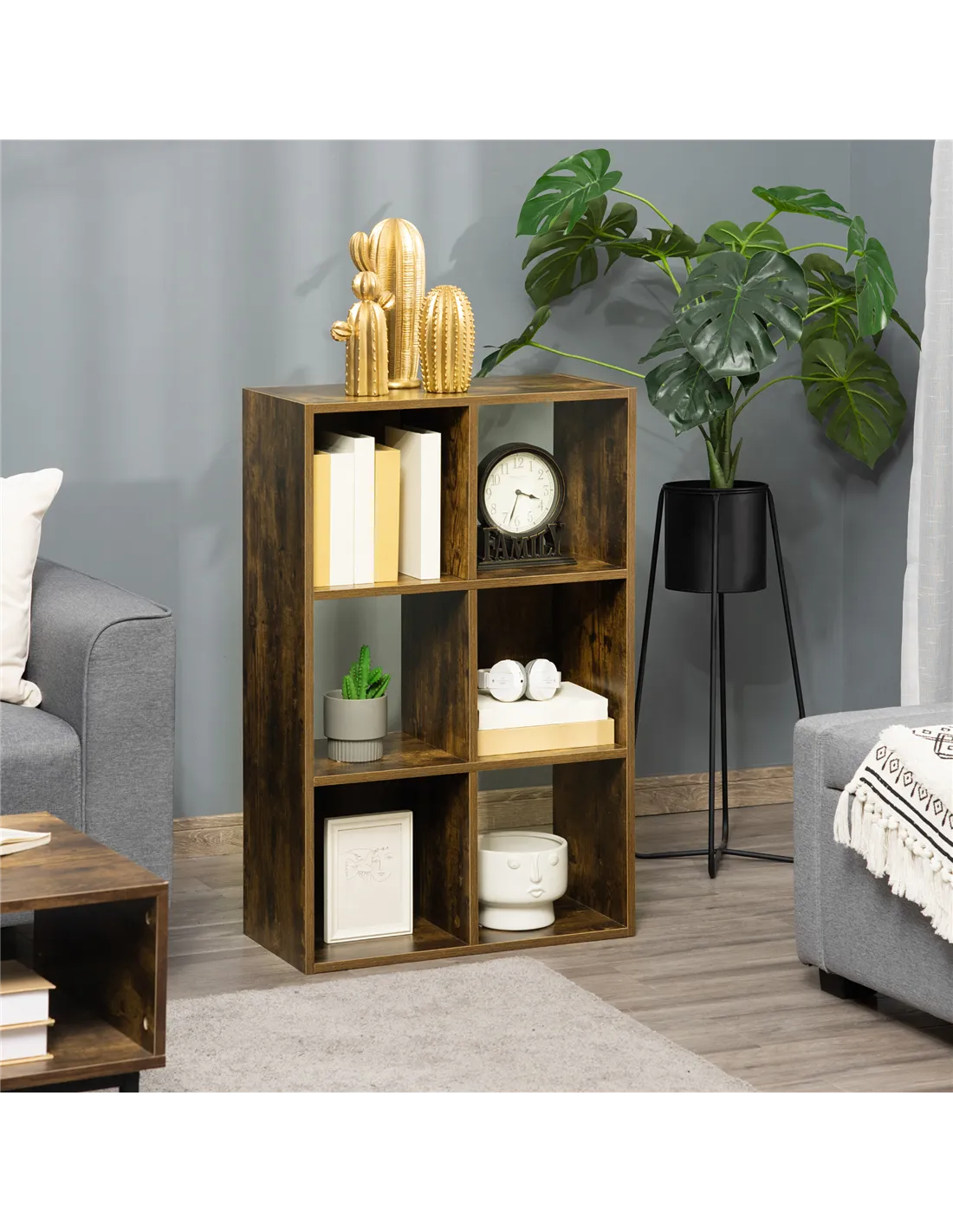 HOMCOM Industrial Style Storage Shelf, Bookcase, Bookshelf with 6 Compartments, Freestanding Shelving Unit for Living Room, Home Study, Rustic Brown