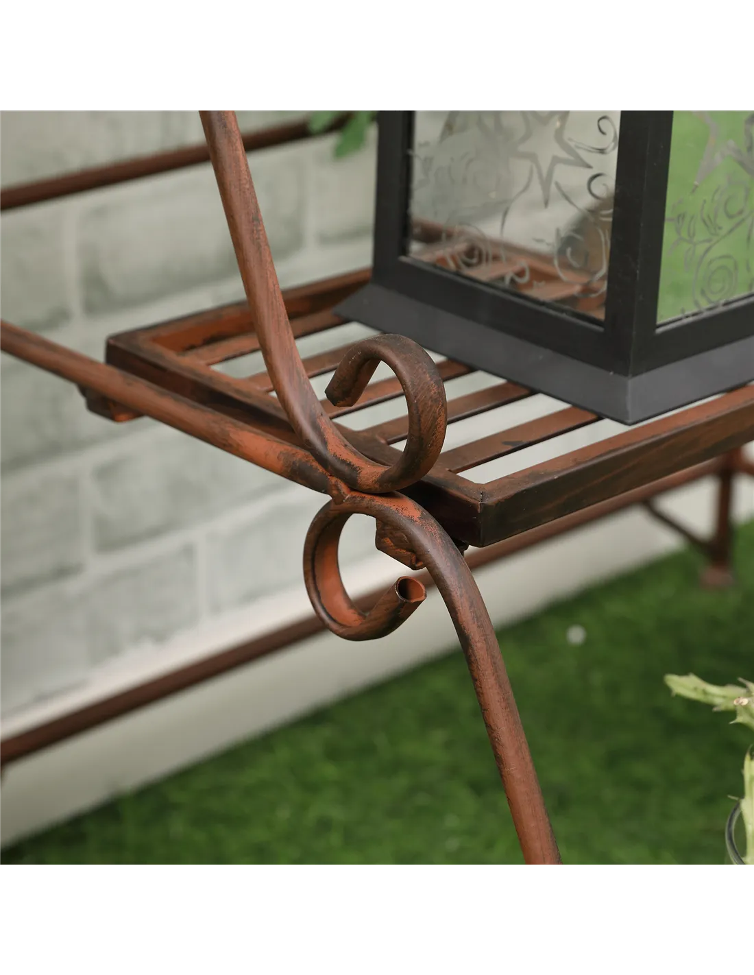 - Its rust brown finish and metal scrollwork complement both traditional and contemporary décor, adding charm to any setting.