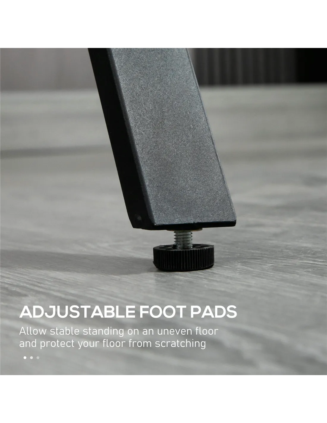 The HOMCOM 120 cm rectangular bar table is a versatile addition to any home, perfectly suited for breakfast nooks, compact dining areas, or as a stylish coffee desk in your living room. Its wood-effect tabletop and sleek steel legs complement modern interiors, making it ideal for casual meals, working from home, or socialising with friends. Designed to comfortably seat four, it fits well in kitchens, open-plan spaces, or even home offices where a compact yet functional surface is needed. Adjustable feet ensure stability on uneven floors, enhancing usability across various rooms.