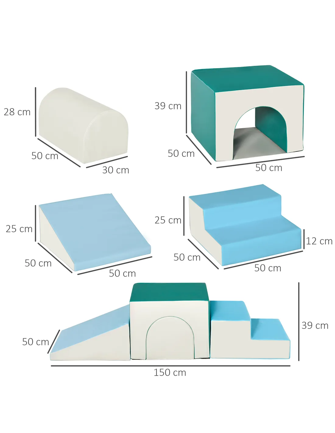 Amazing for curious kids, this HOMCOM soft playset offers a safe space for climbing, crawling and sliding, aiding motor and physical development. The soft PU cover is easy to clean, whilst the padded EPE foam ensures a soft play area for little ones at home, nurseries or schools. You can reshape the four pieces to create different obstacles, allowing kids to explore and develop.