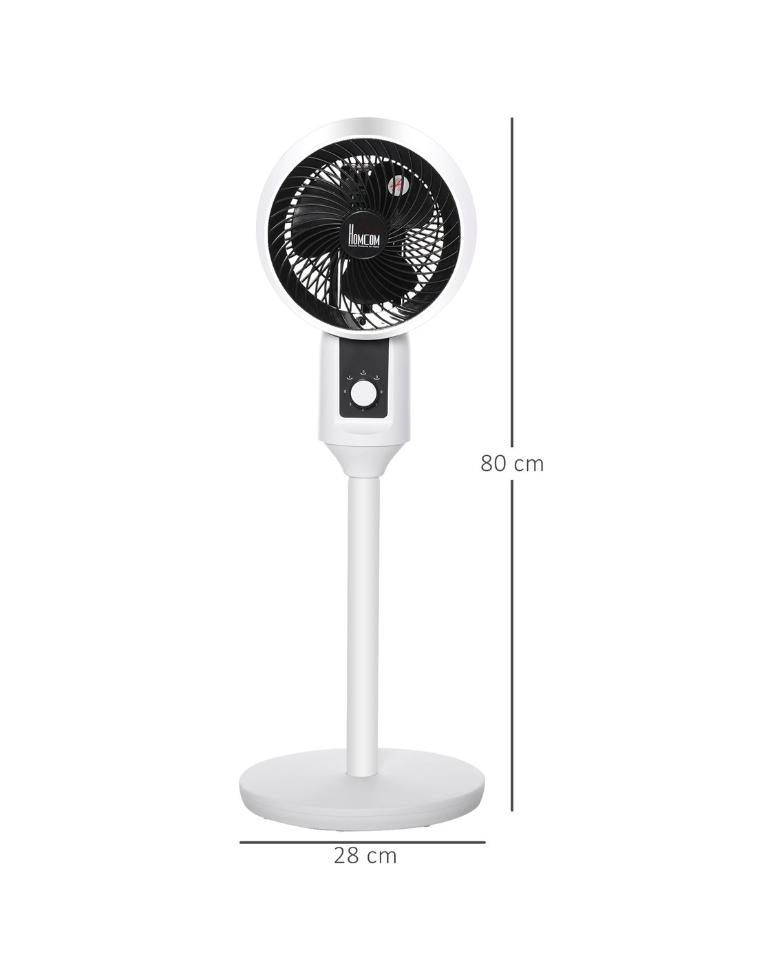 HOMCOM 9'' Air Circulator Fan 3 Speed, 70° Oscillation 90° Vertical Tilt, Carry Handle, Pedestal Fan, Pedestal Fan for Living Room, Bedroom, Office, White and Black