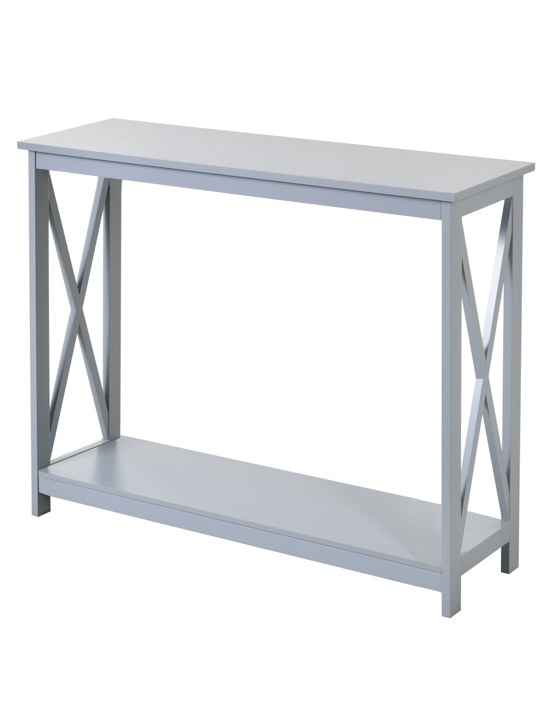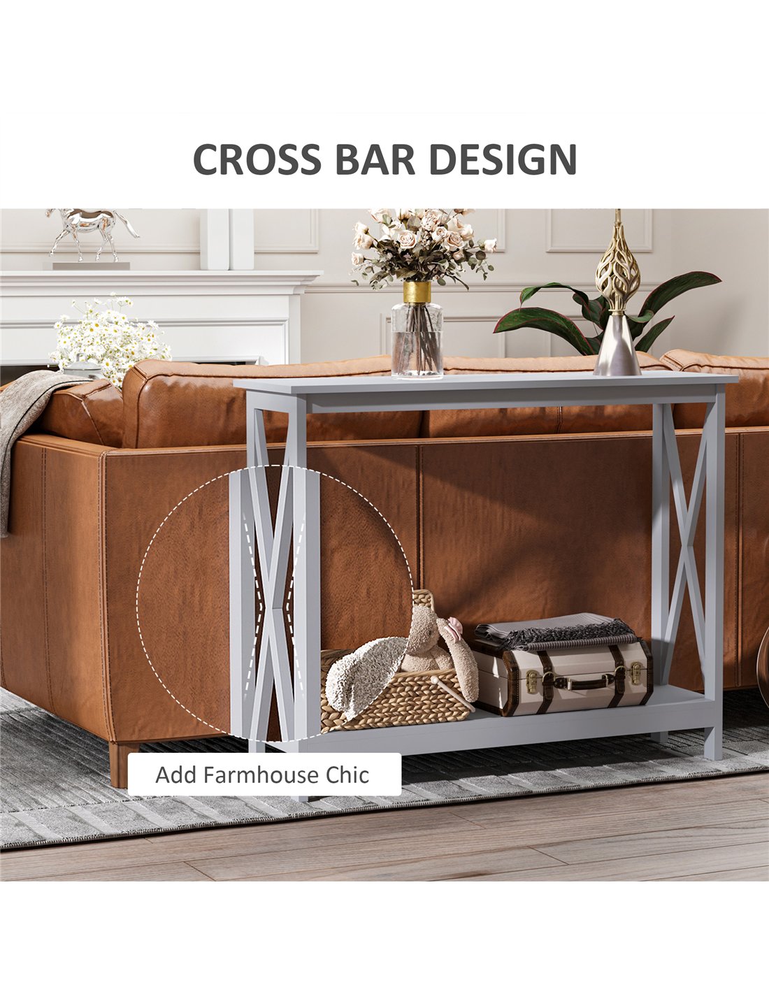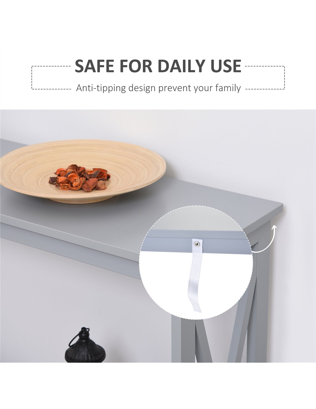 HOMCOM Console Table Hallway Desk w/Storage Shelf, X Design for Living Room Entryway, Grey
