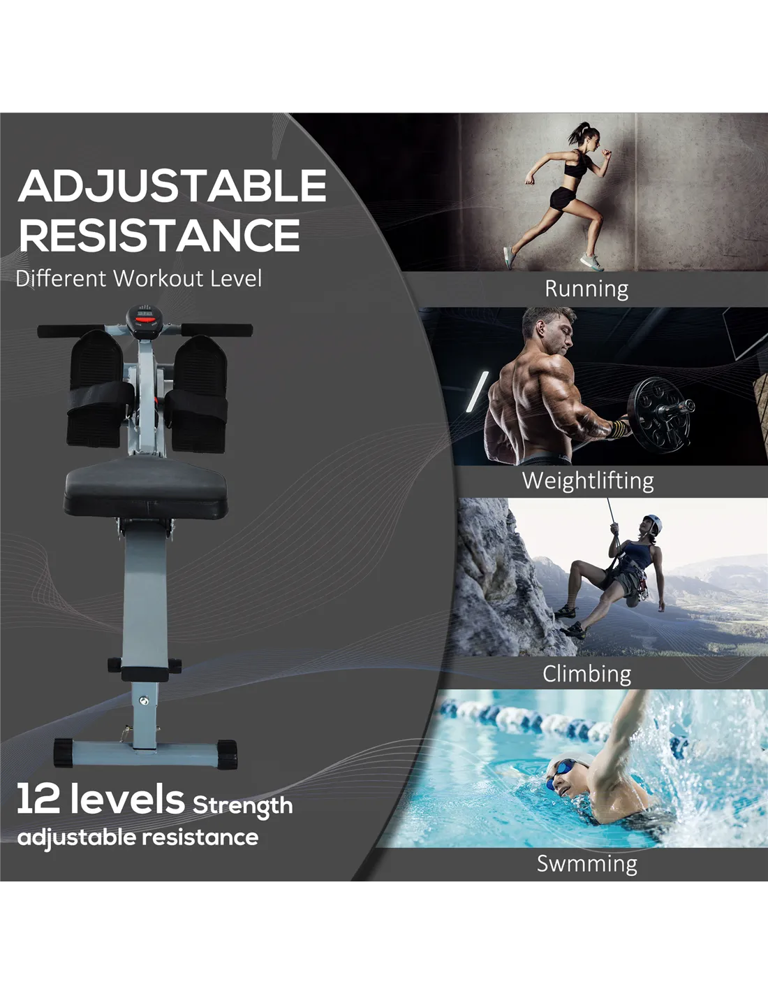 - With multi-level adjustable resistance for various workout levels
