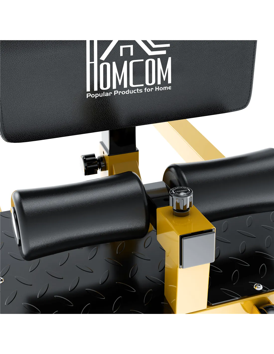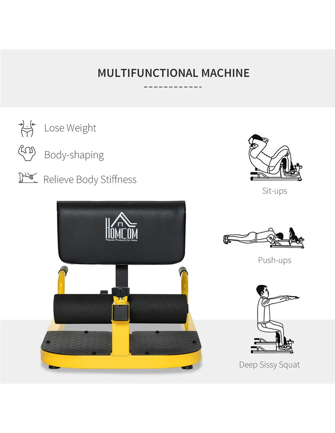 HOMCOM Squat Machine with Push Up Stand, Padded Hip Thrust Bench with Adjustable Cushion for Home Gym Work Out, Yellow