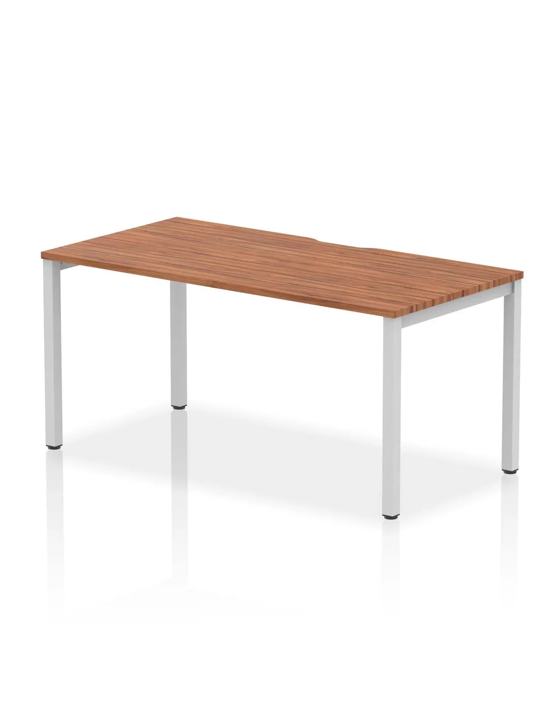 DynamicEvolve Plus 1600mm Single Starter Office Bench Desk Walnut Top Silver Frame