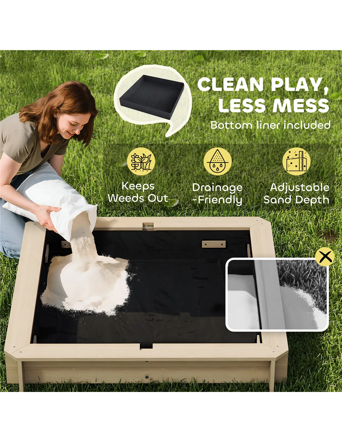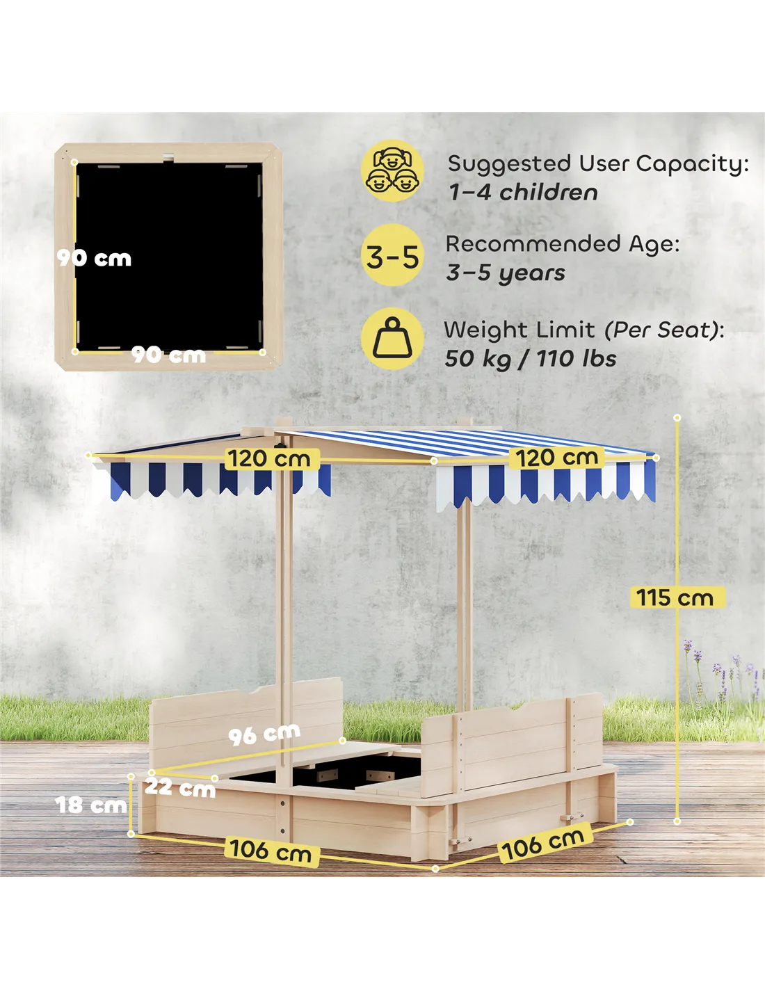- The foldable backrests serve as a practical cover, protecting the sand from weather and wildlife, ensuring the sandpit remains clean and ready for use.