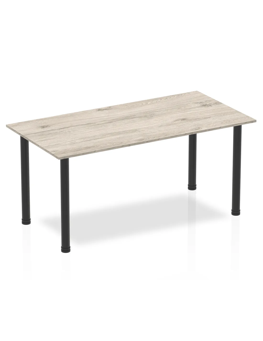 DynamicImpulse 1600mm Straight Writing Desk Table Grey Oak Top Black Post Leg