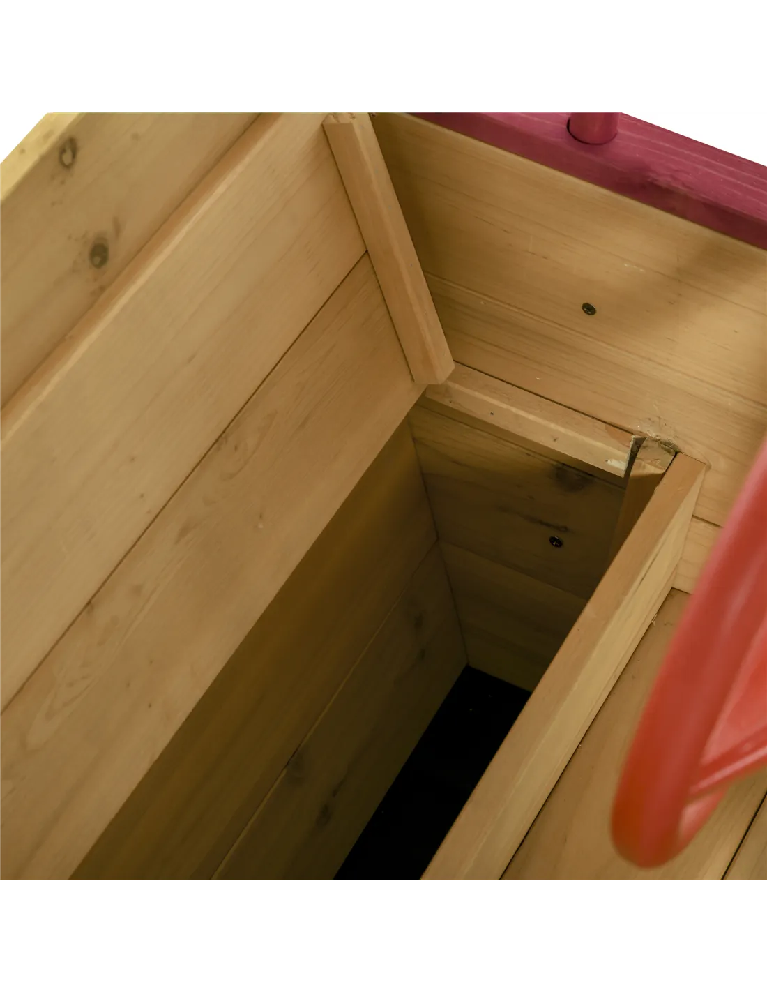 - The spacious storage bench conveniently holds toys and sand accessories, keeping your garden tidy and organised.